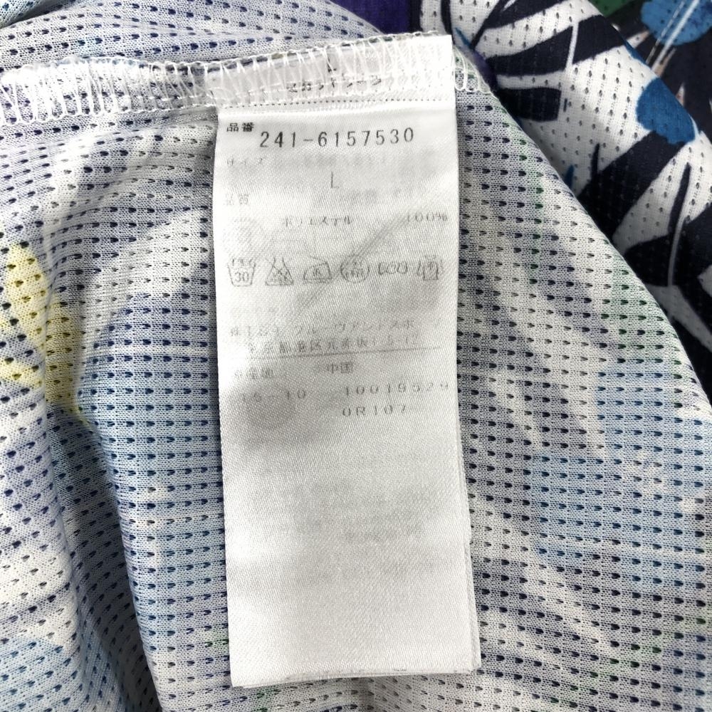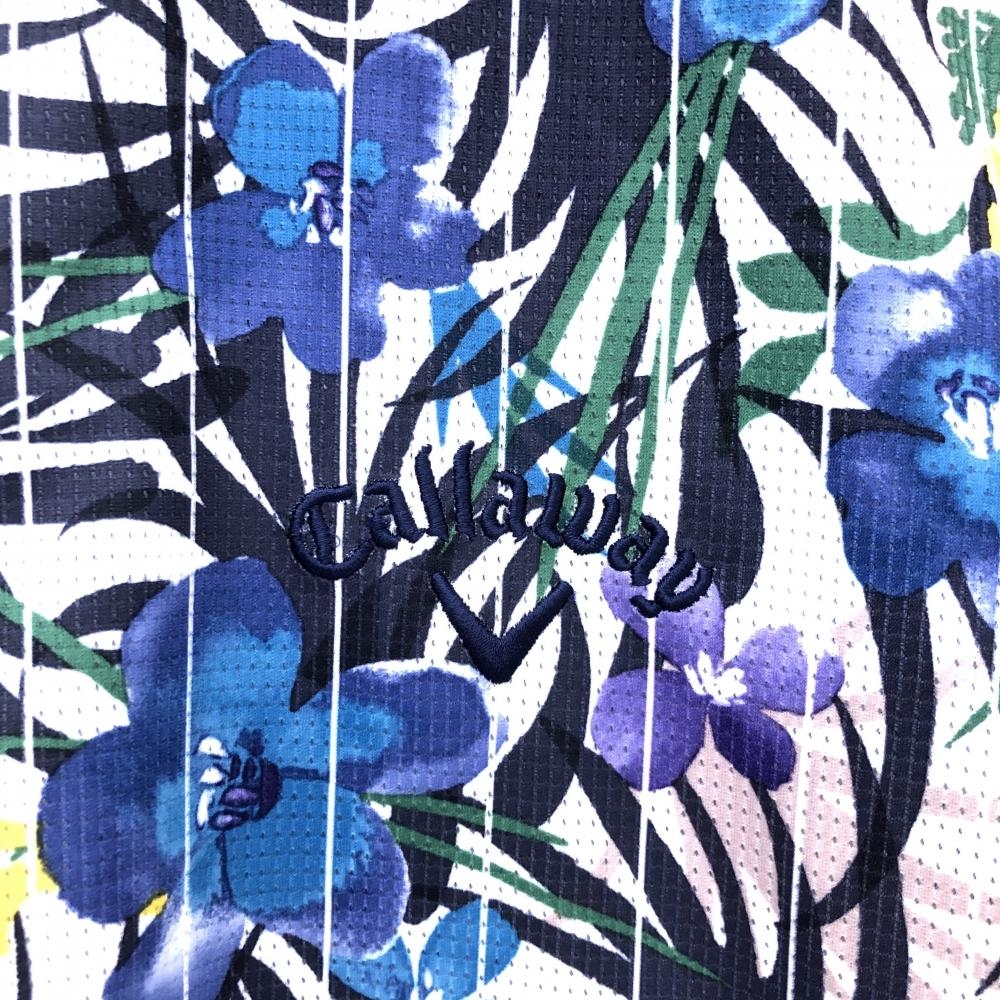 【超美品】キャロウェイ 半袖ポロシャツ 白×ブルー 花柄 ストライプ ボタンダウン メンズ L ゴルフウェア Callaway