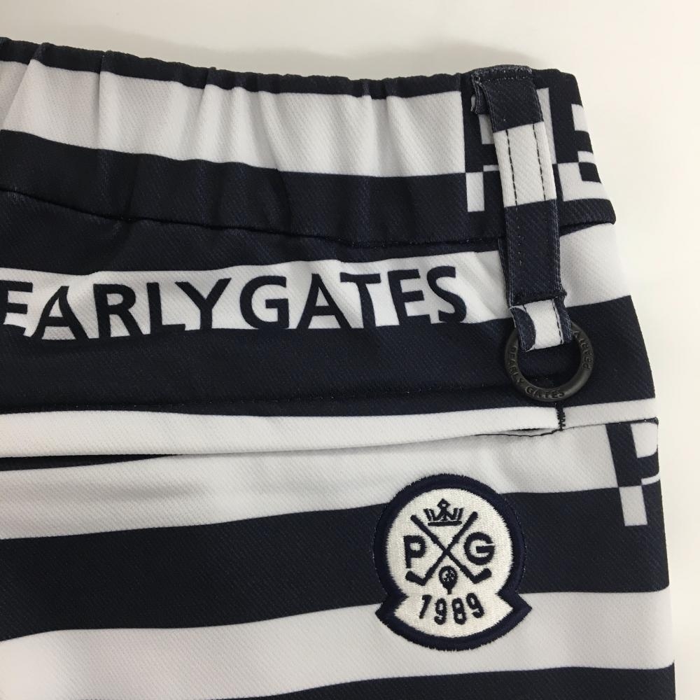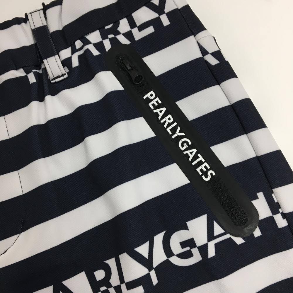 【新品】パーリーゲイツ ジョガーパンツ ネイビー×白 ボーダー ロゴ総柄 レディース 0(S) ゴルフウェア PEARLY GATES
