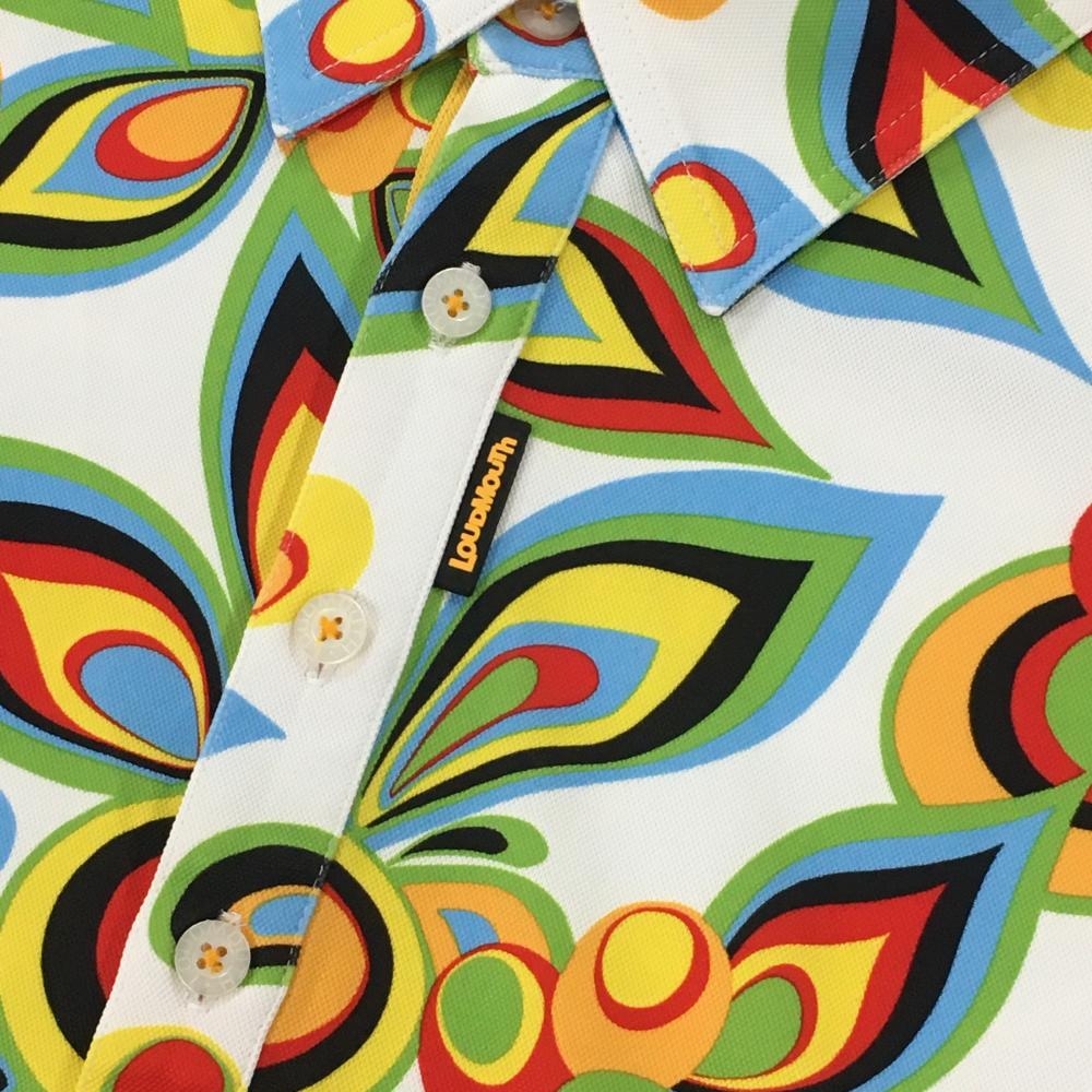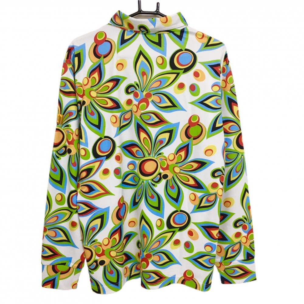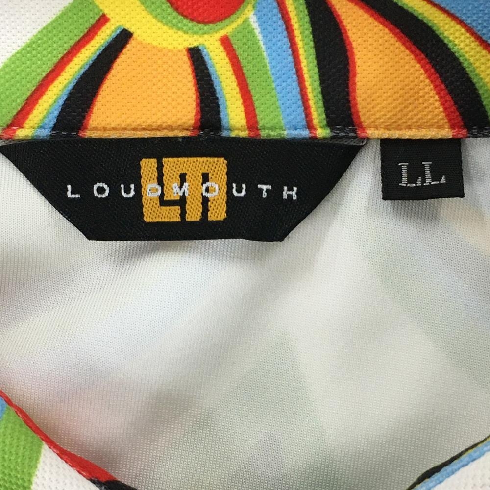 【超美品】ラウドマウス 長袖ポロシャツ 白×ライトグリーン 総柄 シャガデリックホワイト メンズ LL ゴルフウェア LOUDMOUTH