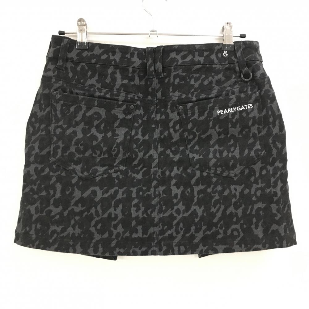 【超美品】パーリーゲイツ スカート グレー×黒 総柄 千鳥格子 レオパード レディース 2(L) ゴルフウェア PEARLY GATES