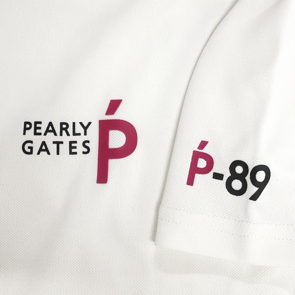 【超美品】パーリーゲイツ 半袖ハイネックシャツ 白 ロゴプリント レディース 1(M) ゴルフウェア 2023年モデル PEARLY GATES