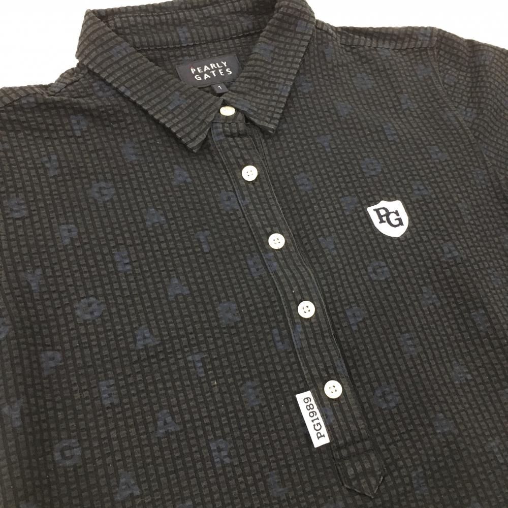 パーリーゲイツ 半袖ポロシャツ ダークネイビー ロゴ総柄 サッカー調生地 レディース 1(M) ゴルフウェア PEARLY GATES