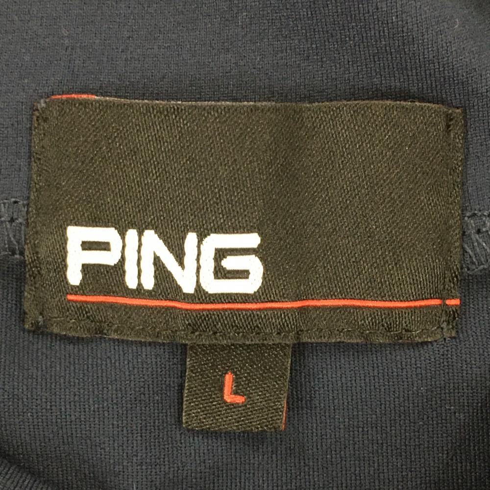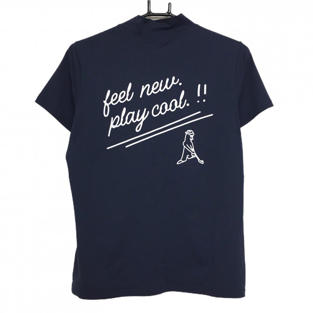 【超美品】ピン 半袖ハイネックシャツ ネイビー Mr.PING バックプリント UVカット レディース L ゴルフウェア 2024年モデル PING
