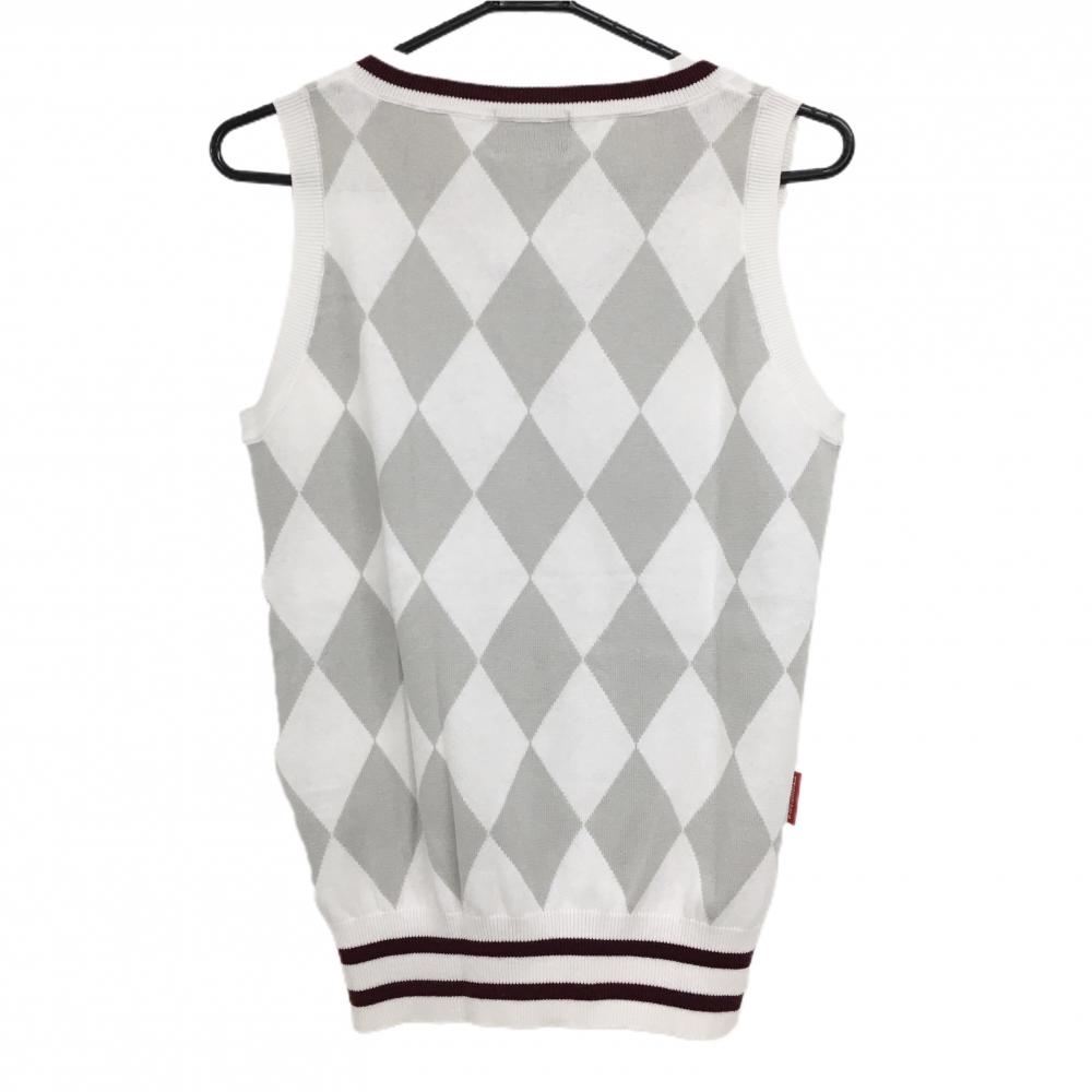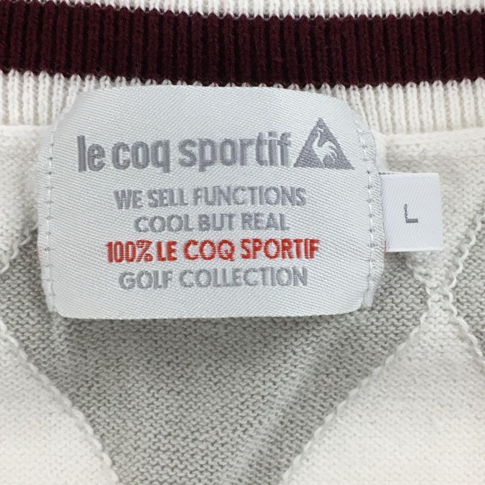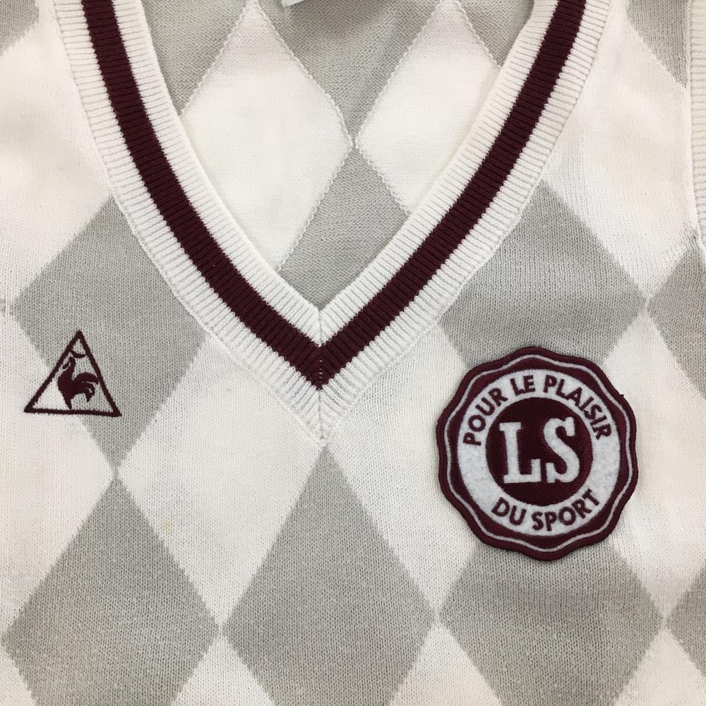 ルコックゴルフ ニットベスト 白×ボルドー Vネックゴルフ コットン混 ダイヤ柄 レディース L ゴルフウェア le coq sportif