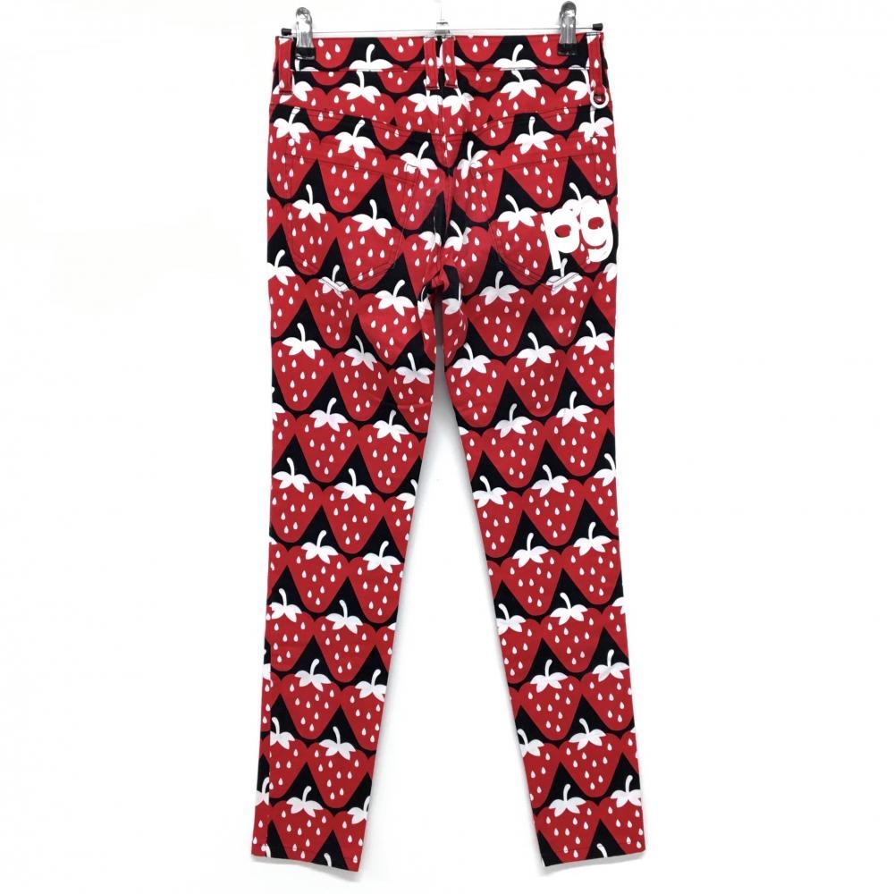 パーリーゲイツ パンツ ネイビー×レッド×白 イチゴ柄 ストレッチ レディース 0(S) ゴルフウェア PEARLY GATES