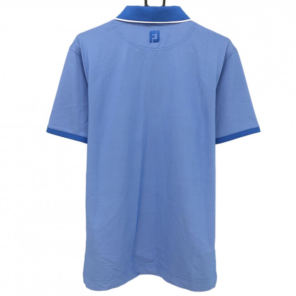【美品】フットジョイ 半袖ポロシャツ ブルー 襟裏一部ボーダー メンズ L ゴルフウェア FootJoy