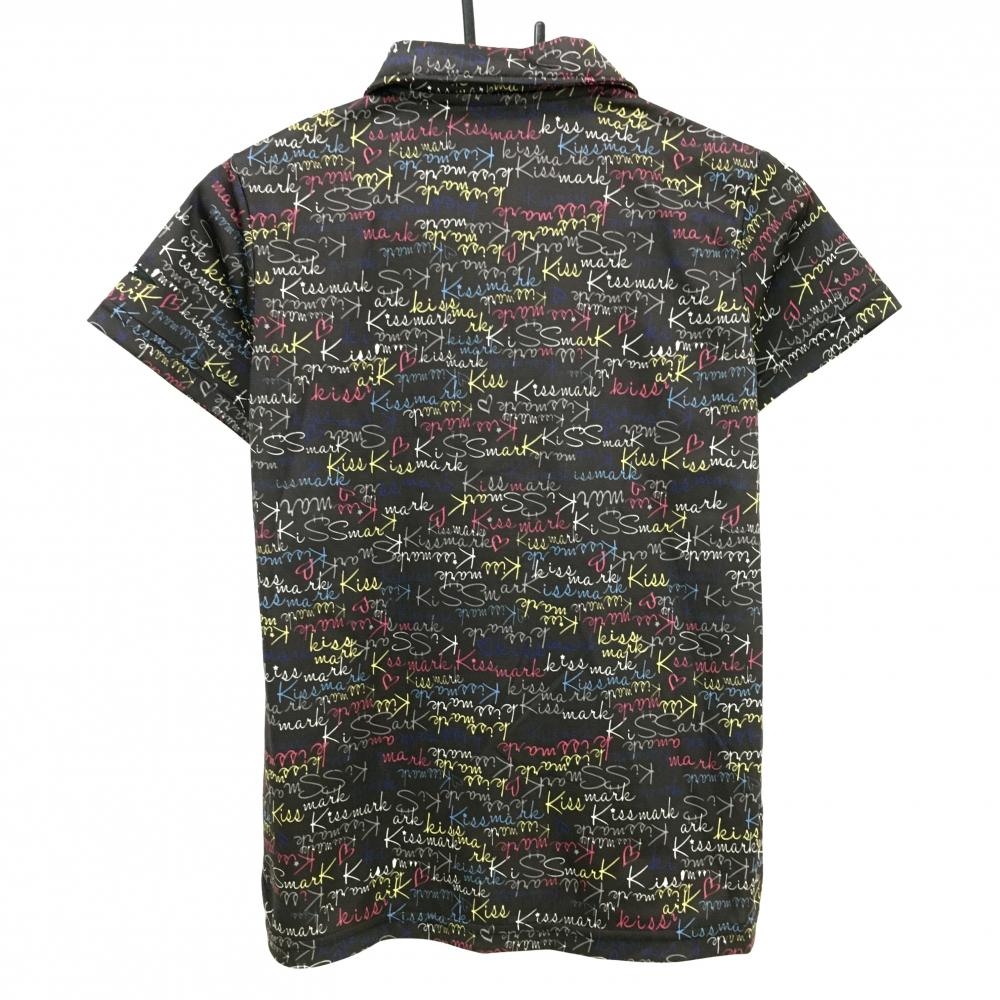 【超美品】キスマーク 半袖ポロシャツ ダークブラウン×マルチカラー ロゴ総柄 レディース M ゴルフウェア kissmark
