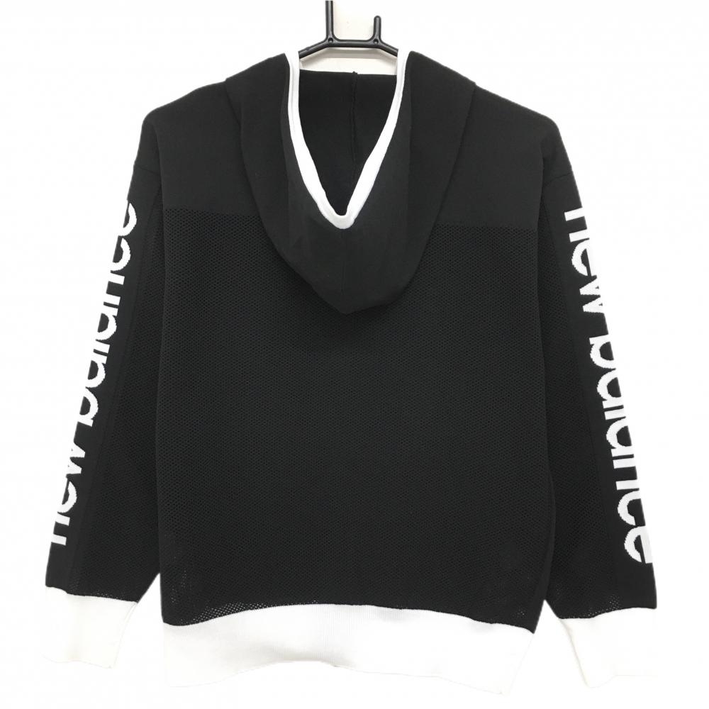 【美品】ニューバランスゴルフ ニットジップパーカー 黒×白 レディース 2(L) ゴルフウェア 2024年モデル New Balance