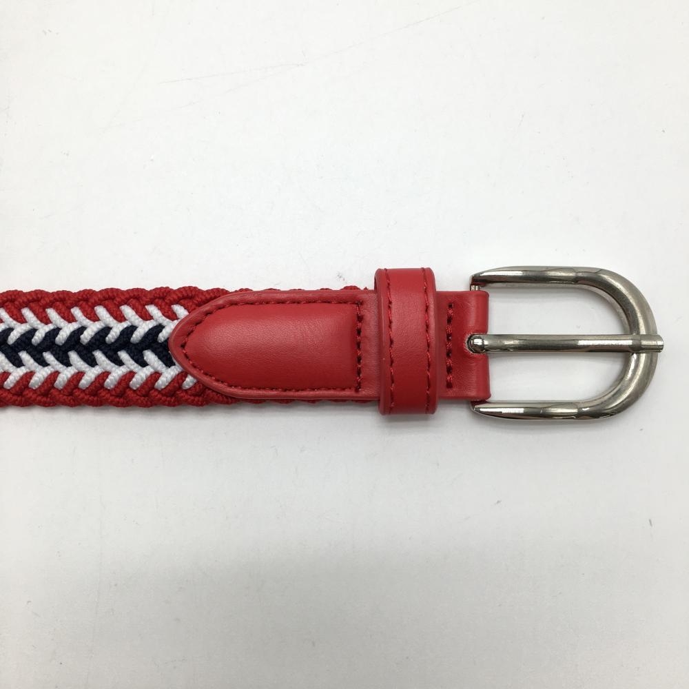 【美品】マリクレール メッシュベルト レッド×白 編込み 穴広がり レディース ゴルフウェア marie claire