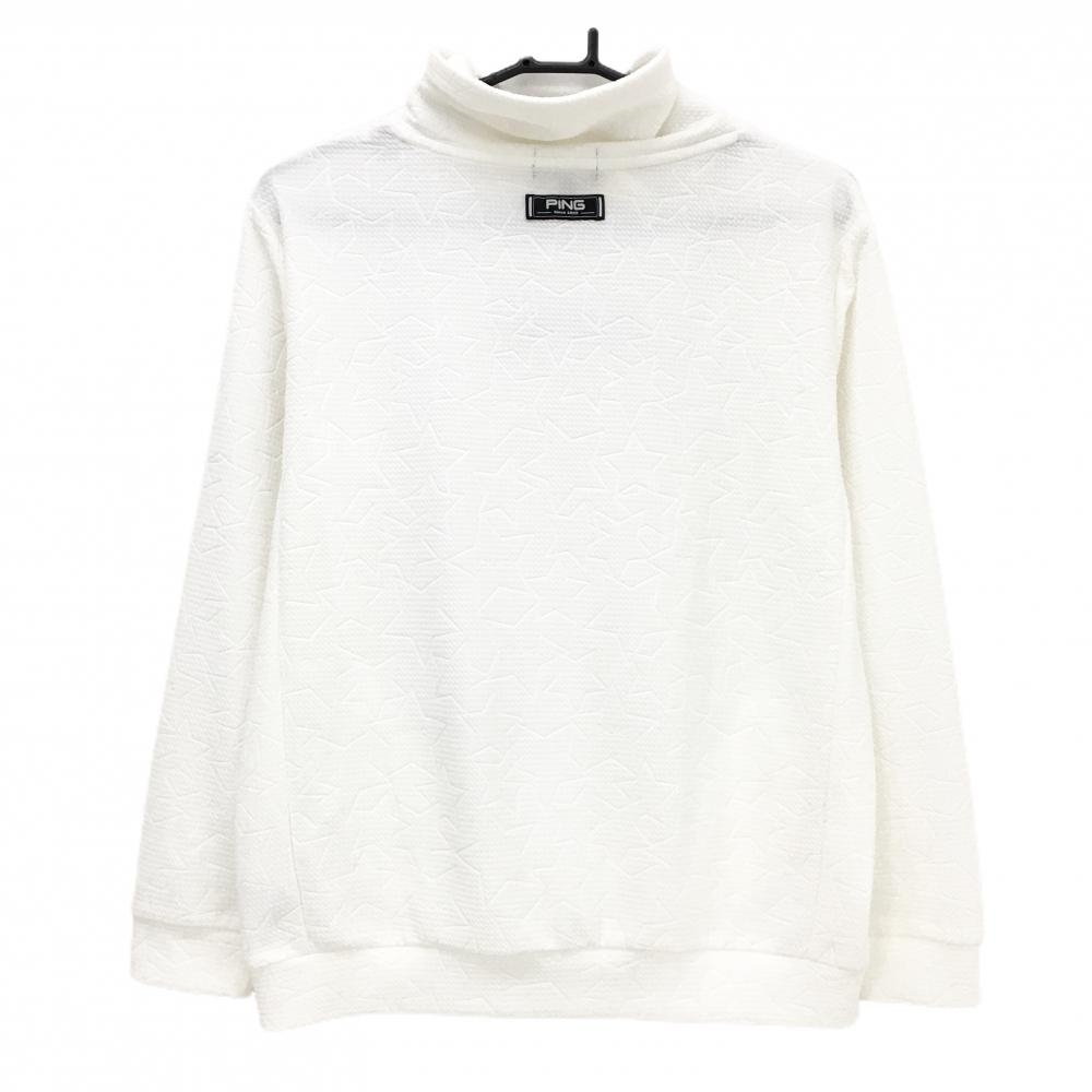 【超美品】ピン 長袖ハイネックシャツ 白 エンボス星柄 ショールカラー レディース M ゴルフウェア 2024年モデル PING
