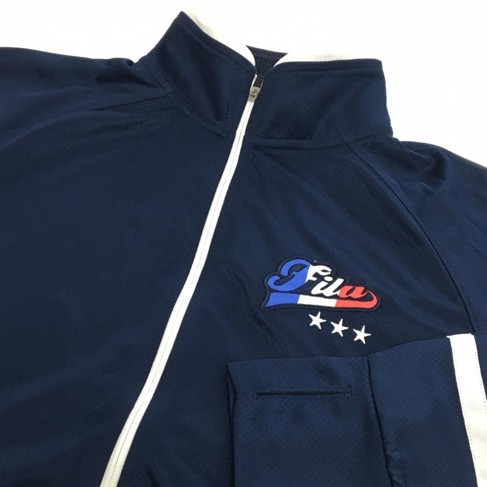 【美品】フィラゴルフ ジャケット ネイビー×白 サイドメッシュ 袖2ライン レディース L ゴルフウェア FILA GOLF