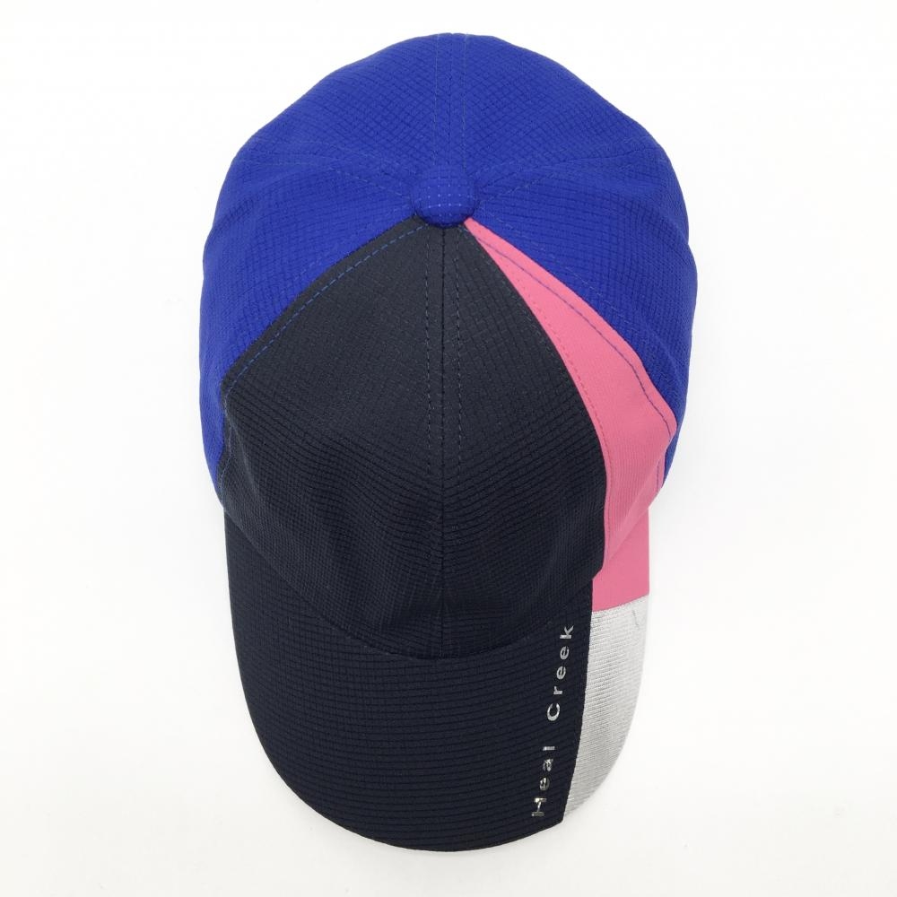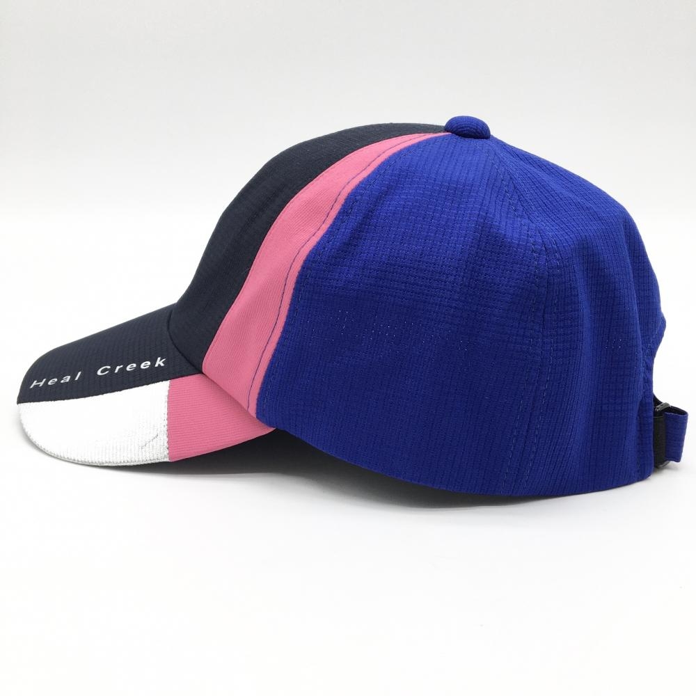 【美品】ヒールクリーク キャップ ネイビー×ブルー×ピンク つばロゴプリント 50 ゴルフウェア Heal Creek