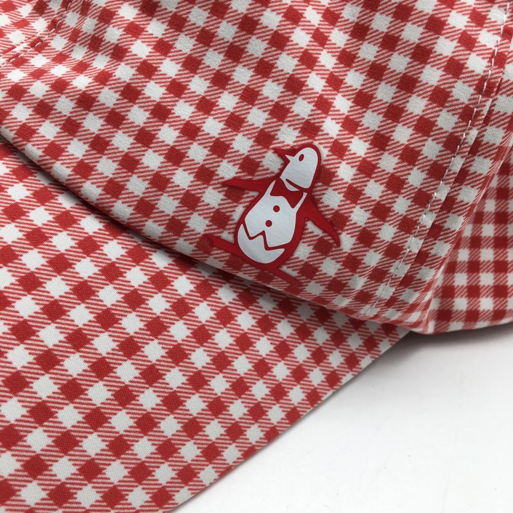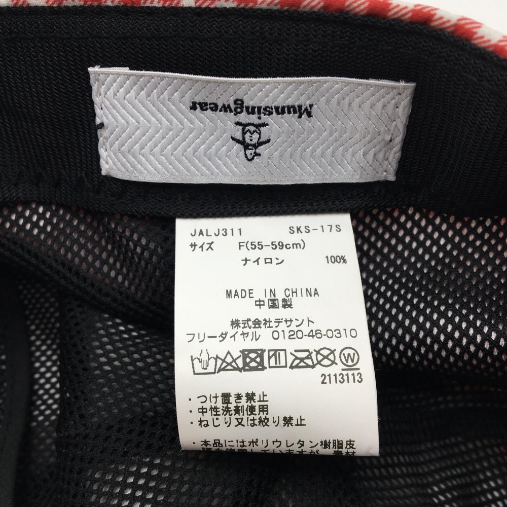 【超美品】マンシングウェア キャップ レッド×白 チェック 内側メッシュ F(55-59cm) ゴルフウェア Munsingwear