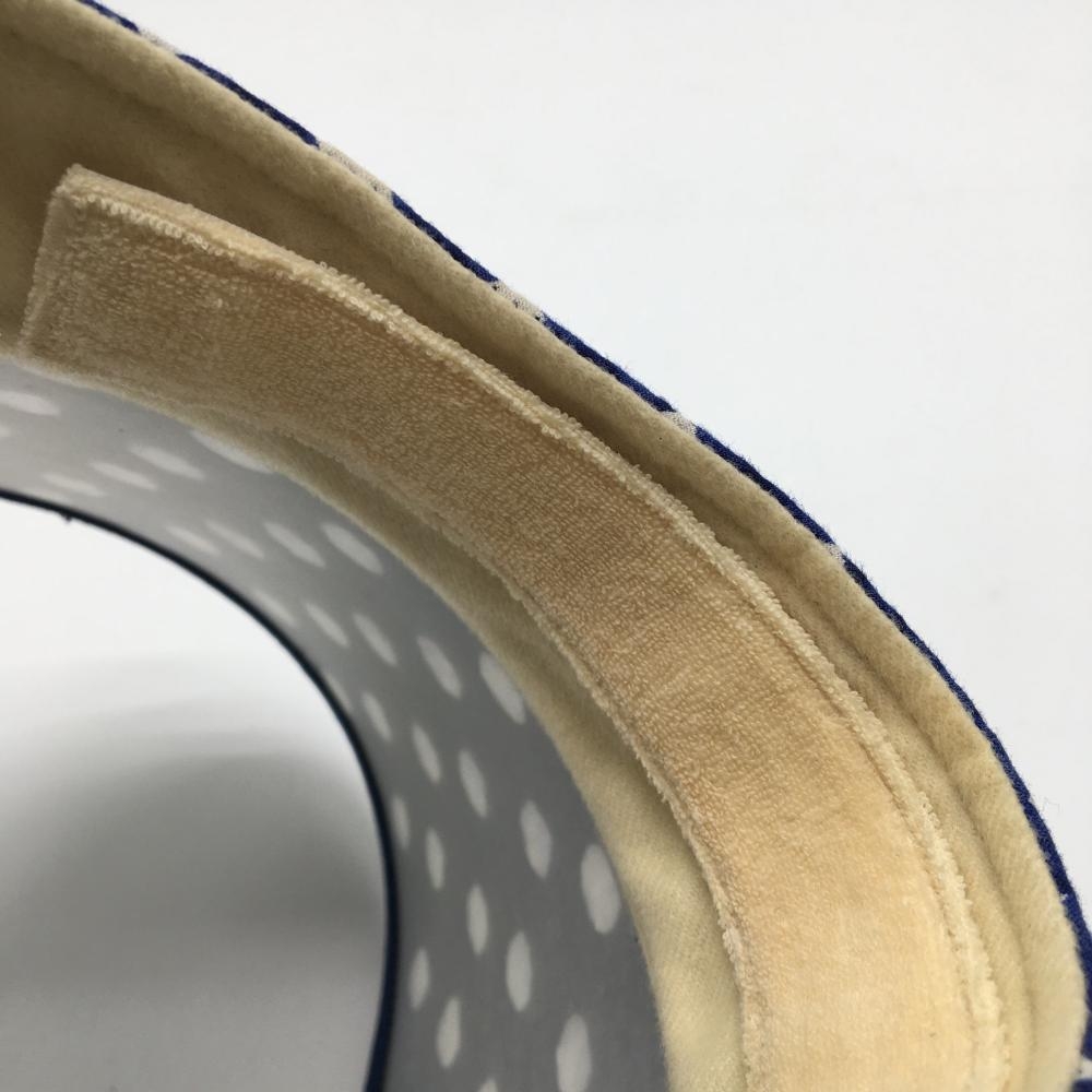 【美品】ムニタルプ つば広サンバイザー ネイビー×白 ドット チェック ヒールクリーク レディース 40 ゴルフウェア Heal Creek