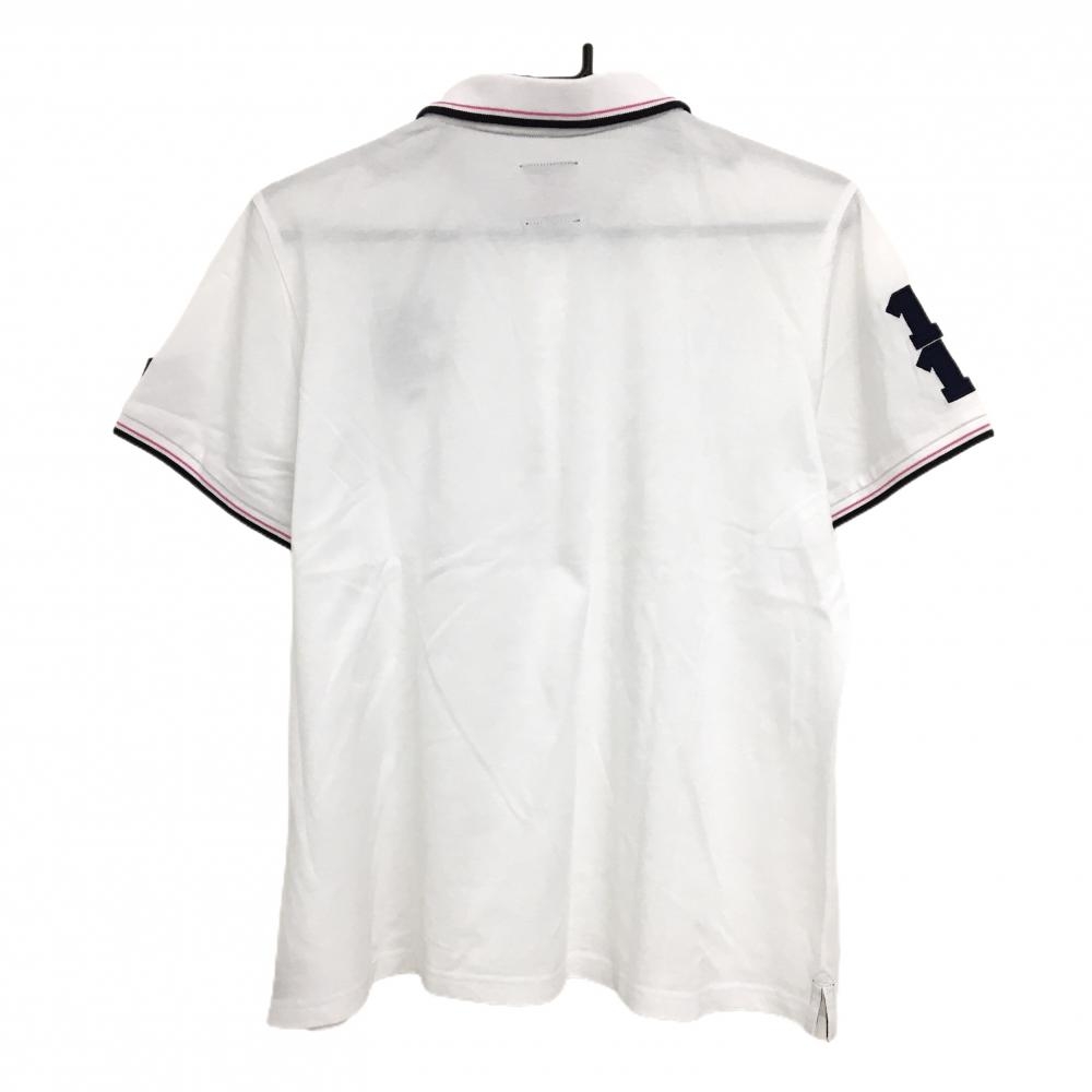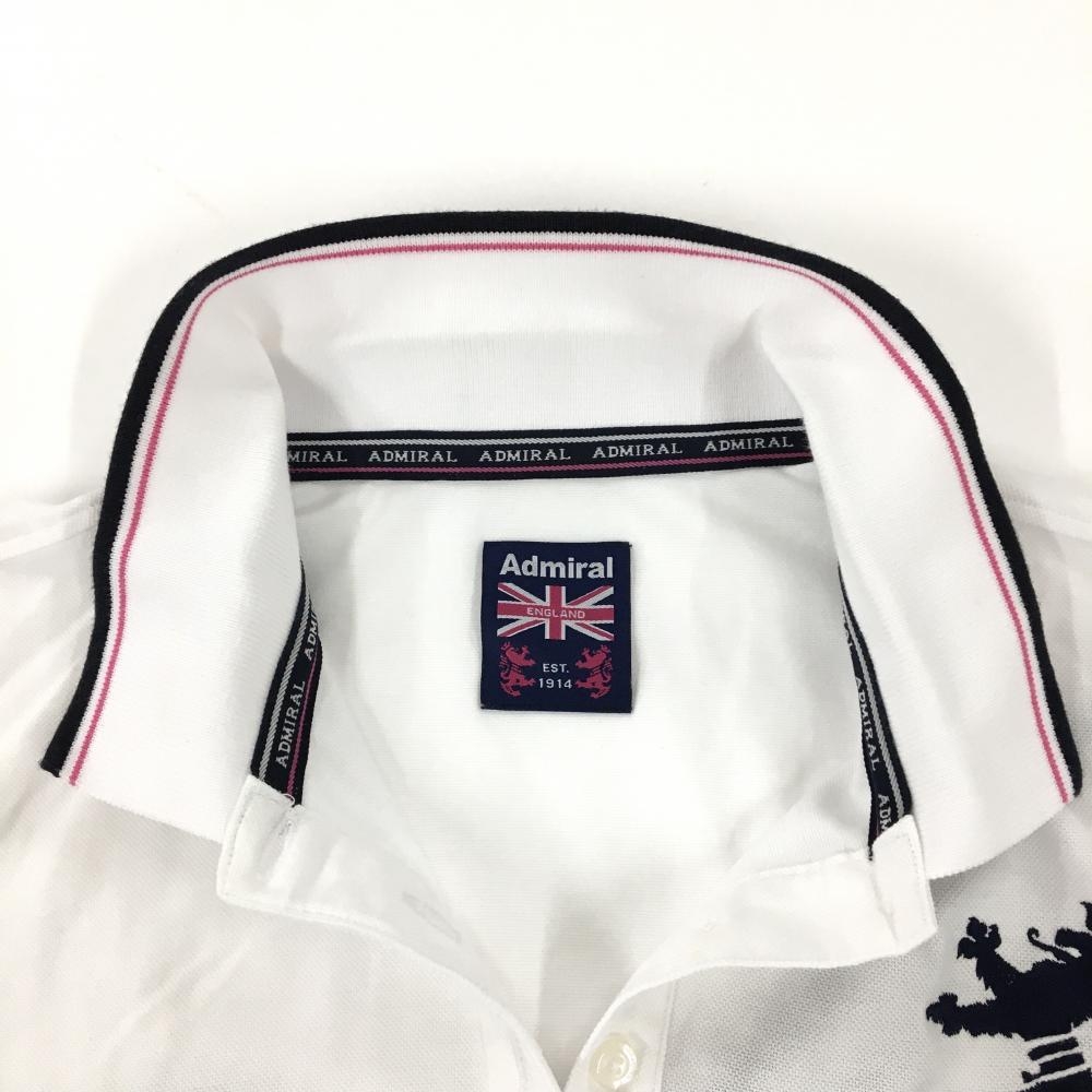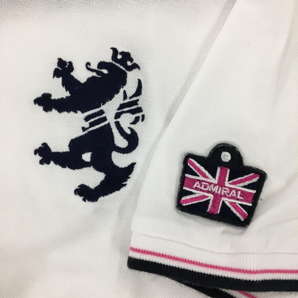 【美品】アドミラル 半袖ポロシャツ 白×ネイビー ロゴ刺しゅう 襟・袖口ライン 大きいサイズ レディース 4L ゴルフウェア Admiral