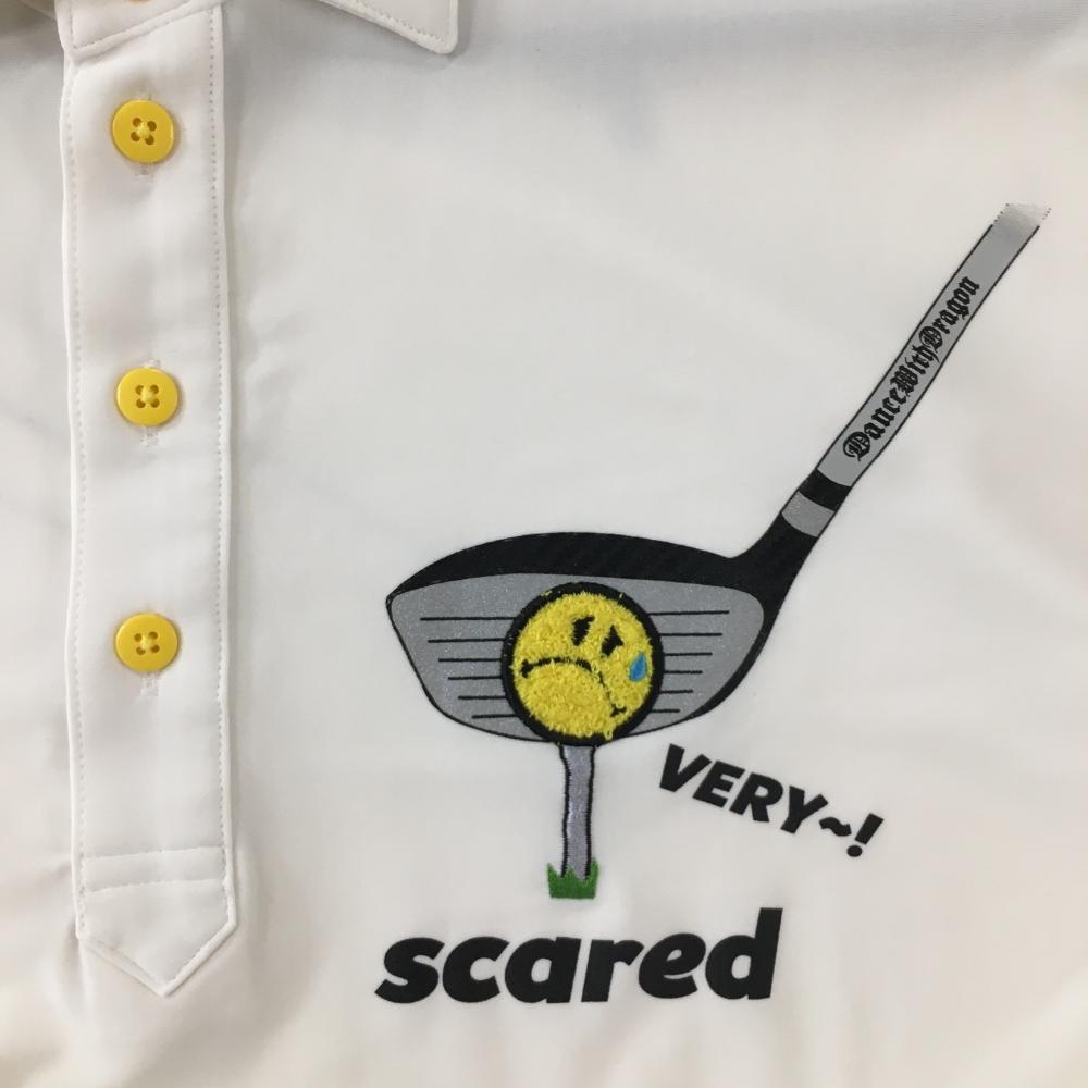 ダンスウィズドラゴン 半袖ポロシャツ 白×黒 ニコちゃん パイルワッペン メンズ 3(L) ゴルフウェア Dance With Dragon