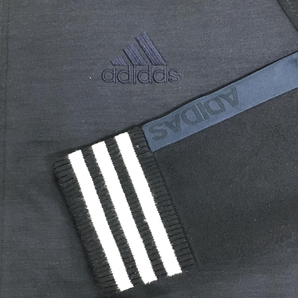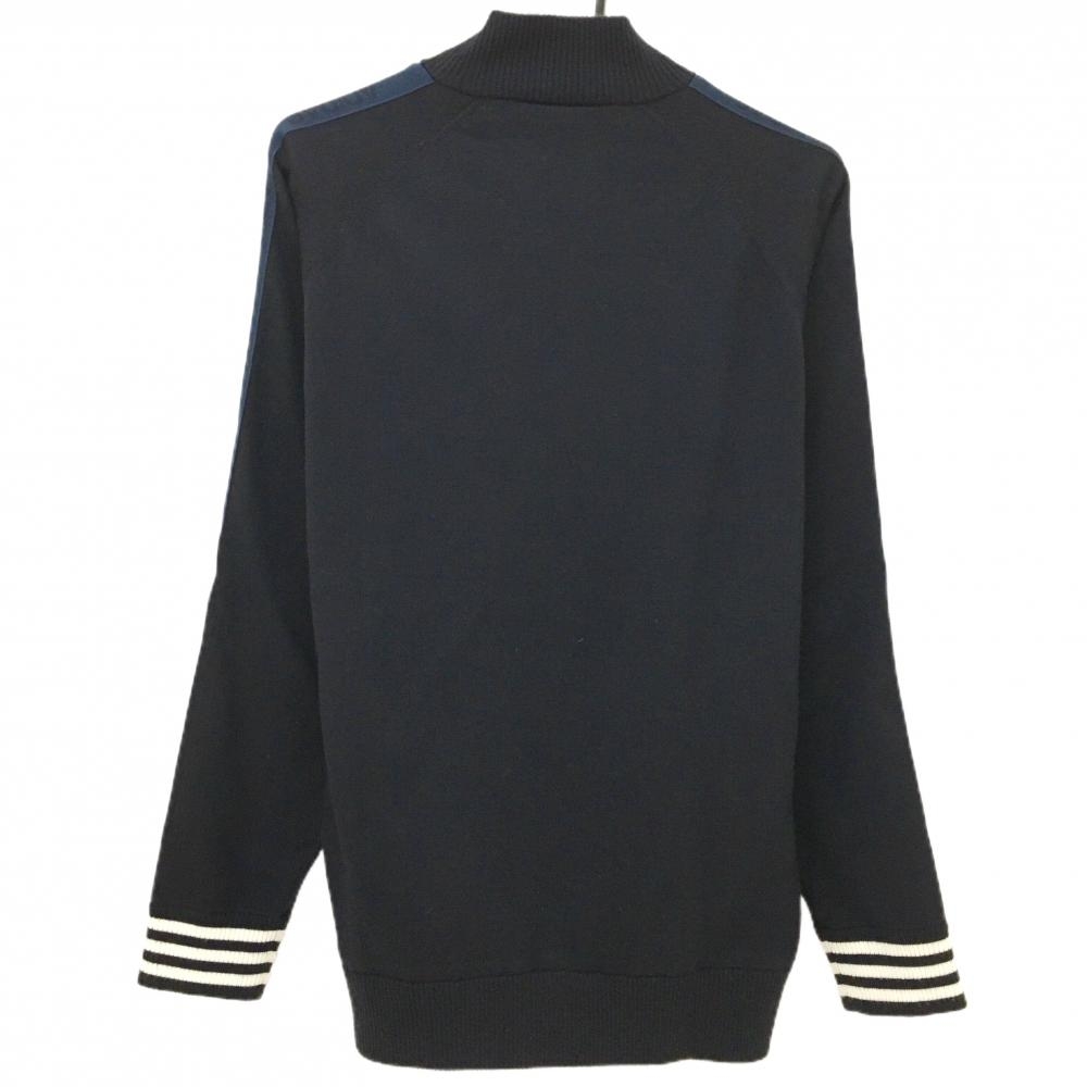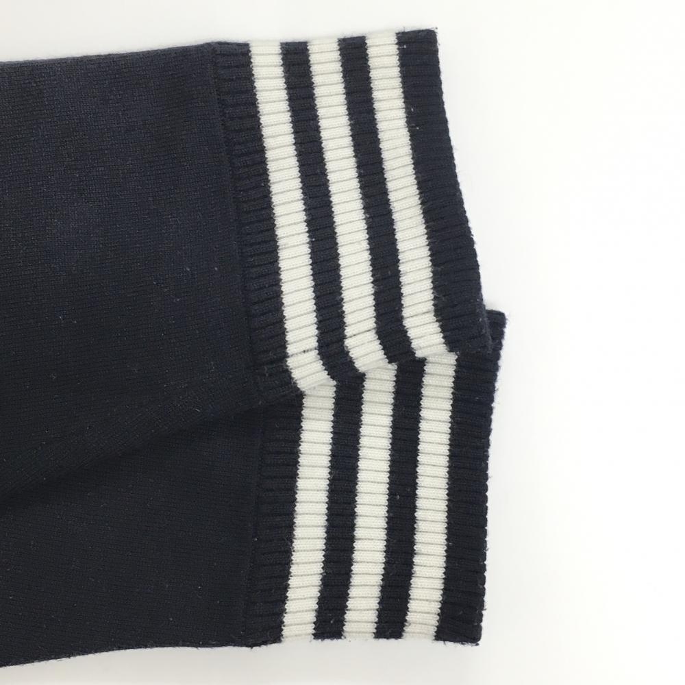 アディダス ニットジャケット ダークネイビー×白 肩・袖ロゴライン 切替 ウール混 メンズ O/XG ゴルフウェア adidas