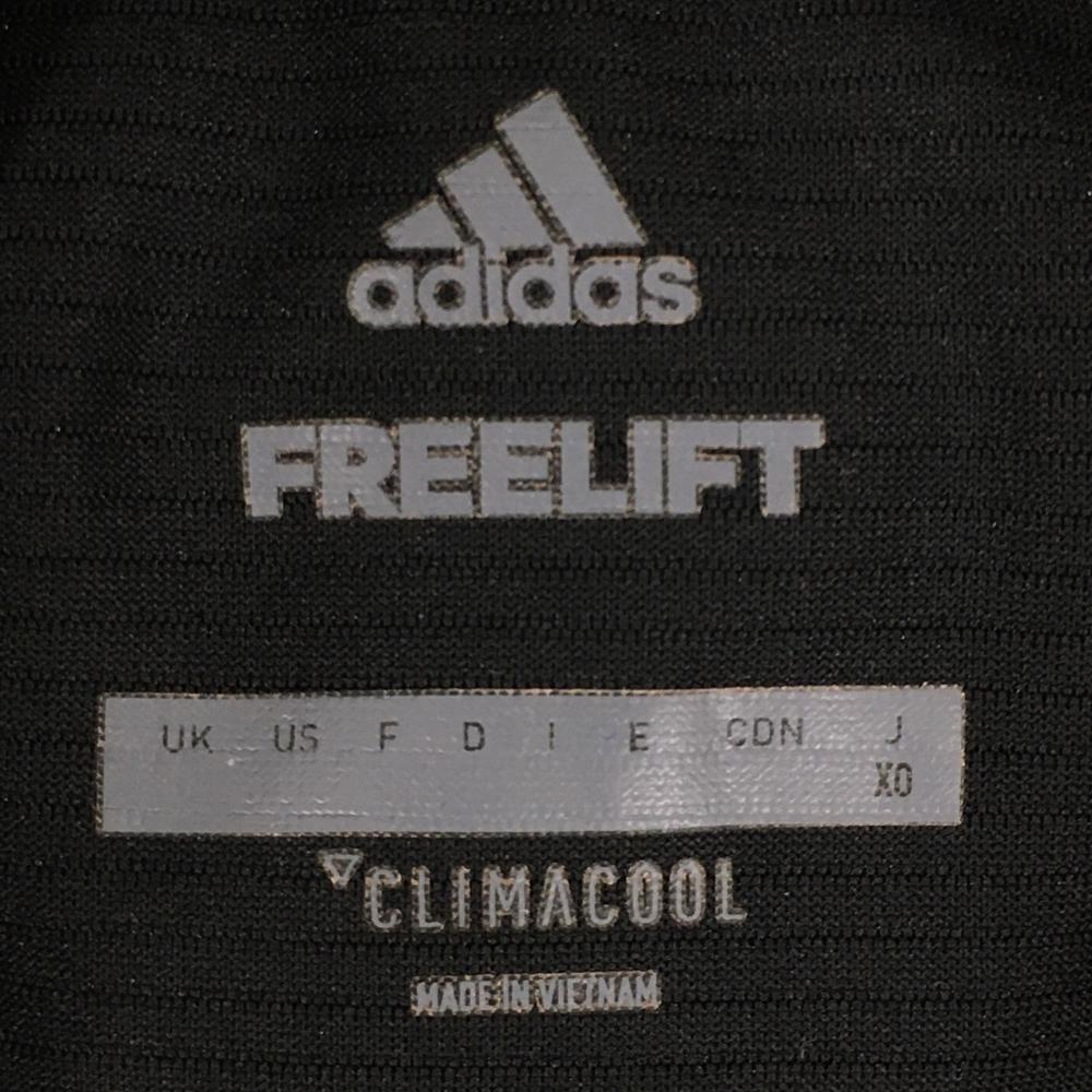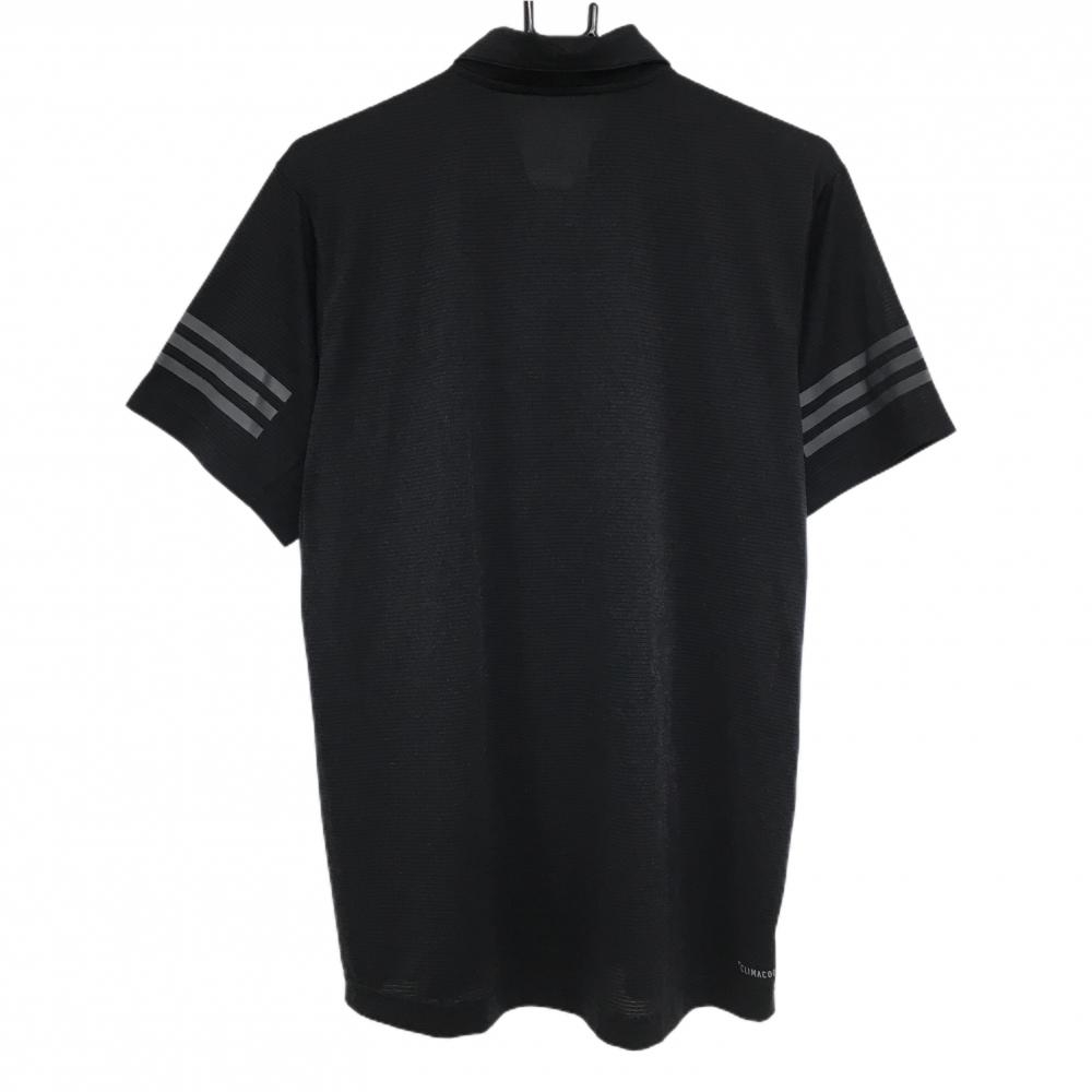 【美品】アディダス 半袖ポロシャツ 黒 細ボーダー地模様 シアー素材 CLIMCOOL 袖3ライン メンズ XO ゴルフウェア adidas