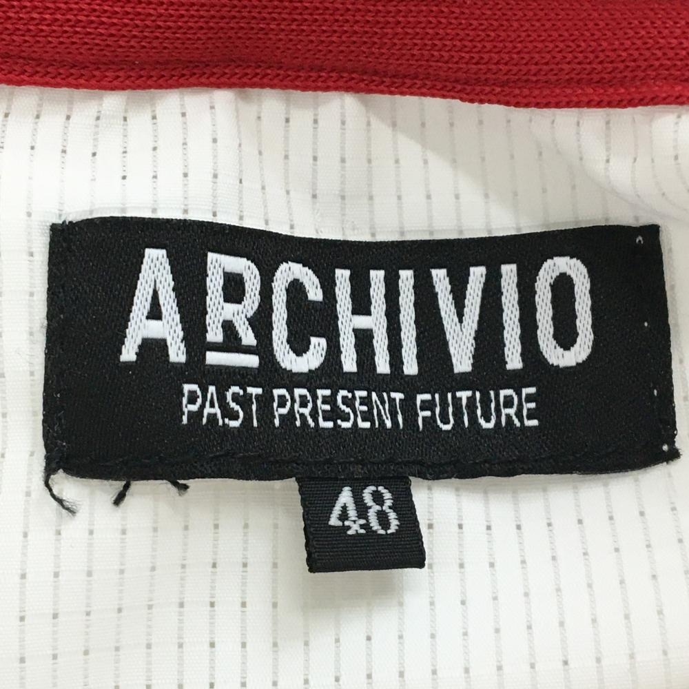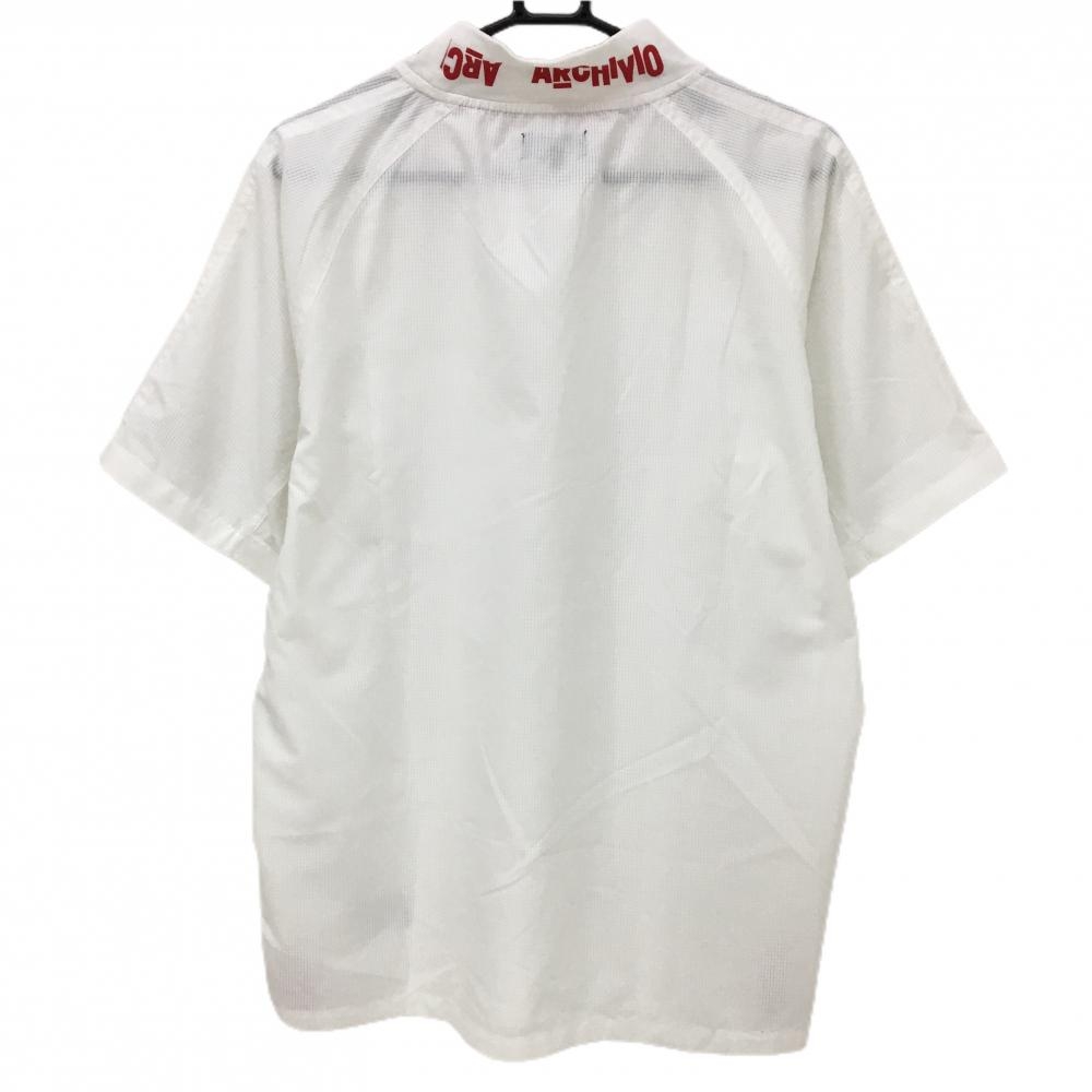 【超美品】アルチビオ 半袖ハイネックシャツ 白×レッド ネックロゴプリント 胸ポケット 薄手 メンズ 48(L) ゴルフウェア archivio