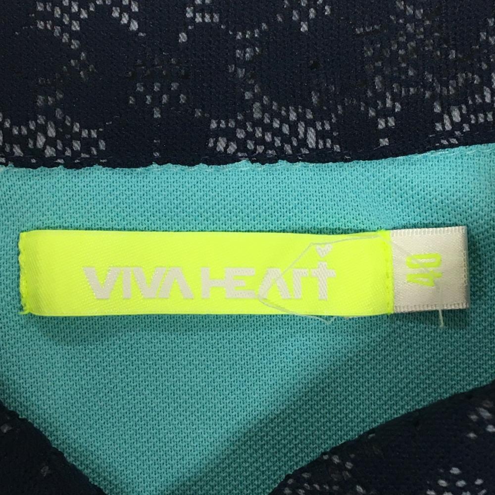 ビバハート 半袖ポロシャツ ライトグリーン×ネイビー 襟・前立てレース生地 レディース 40(M) ゴルフウェア VIVA HEART