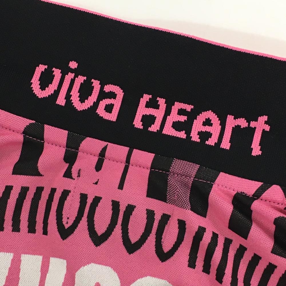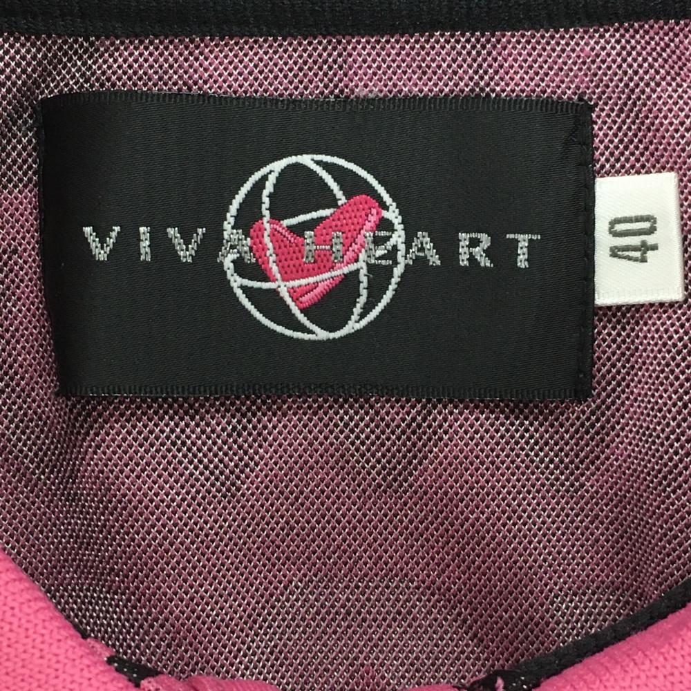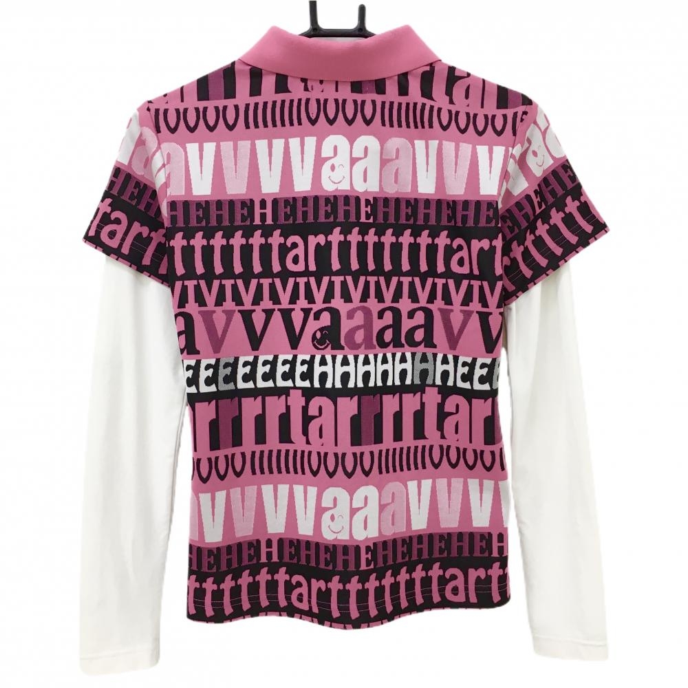 ビバハート 長袖ポロシャツ ピンク×白 英字総柄 重ね着風 襟裏ロゴ レディース 40(M) ゴルフウェア VIVA HEART