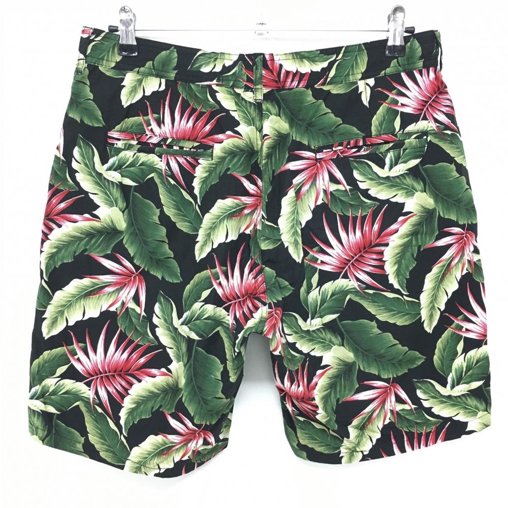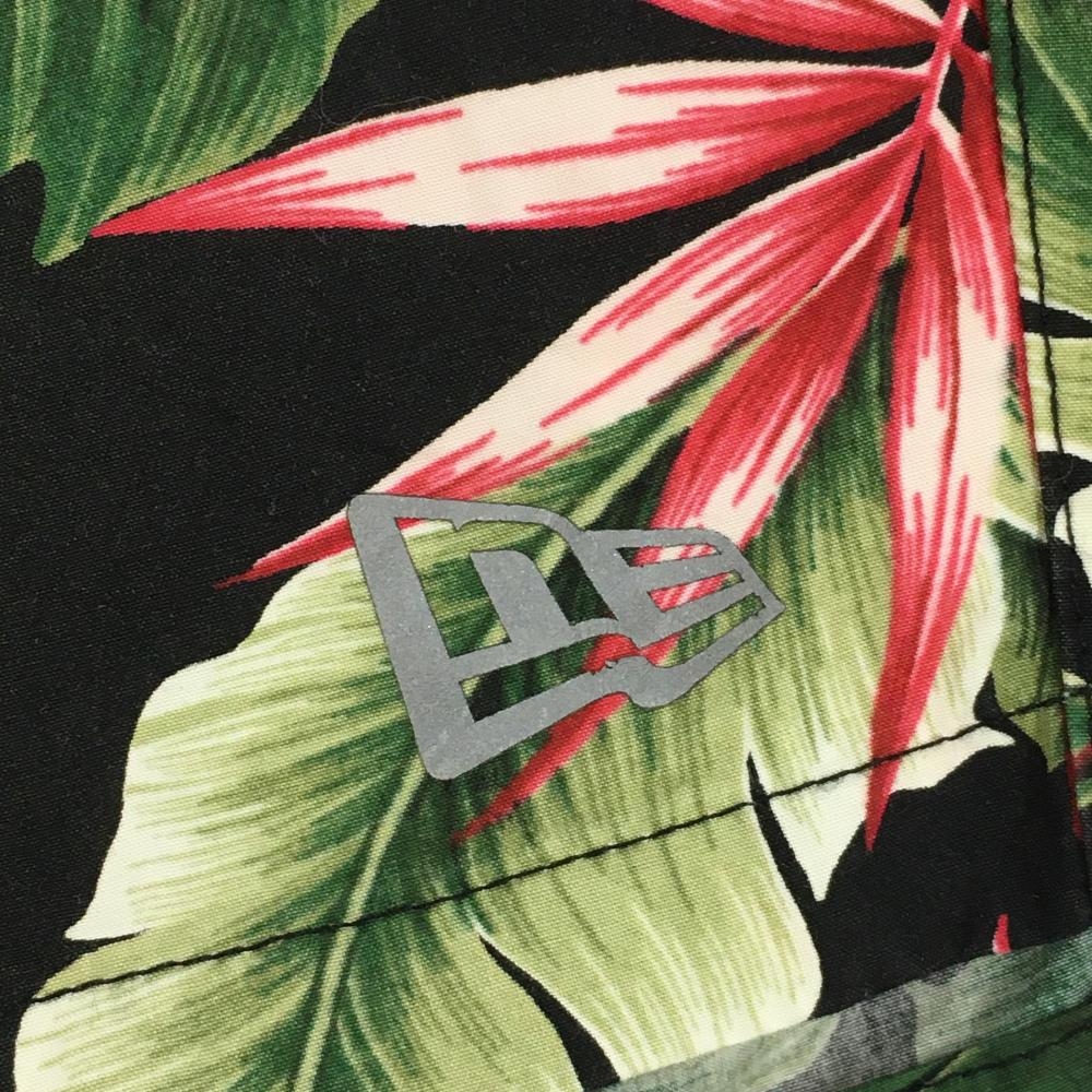 【美品】ニューエラ ハーフパンツ 黒×グリーン×レッド リーフ柄 ウエスト調節紐付 綿100% メンズ LARGE ゴルフウェア New Era
