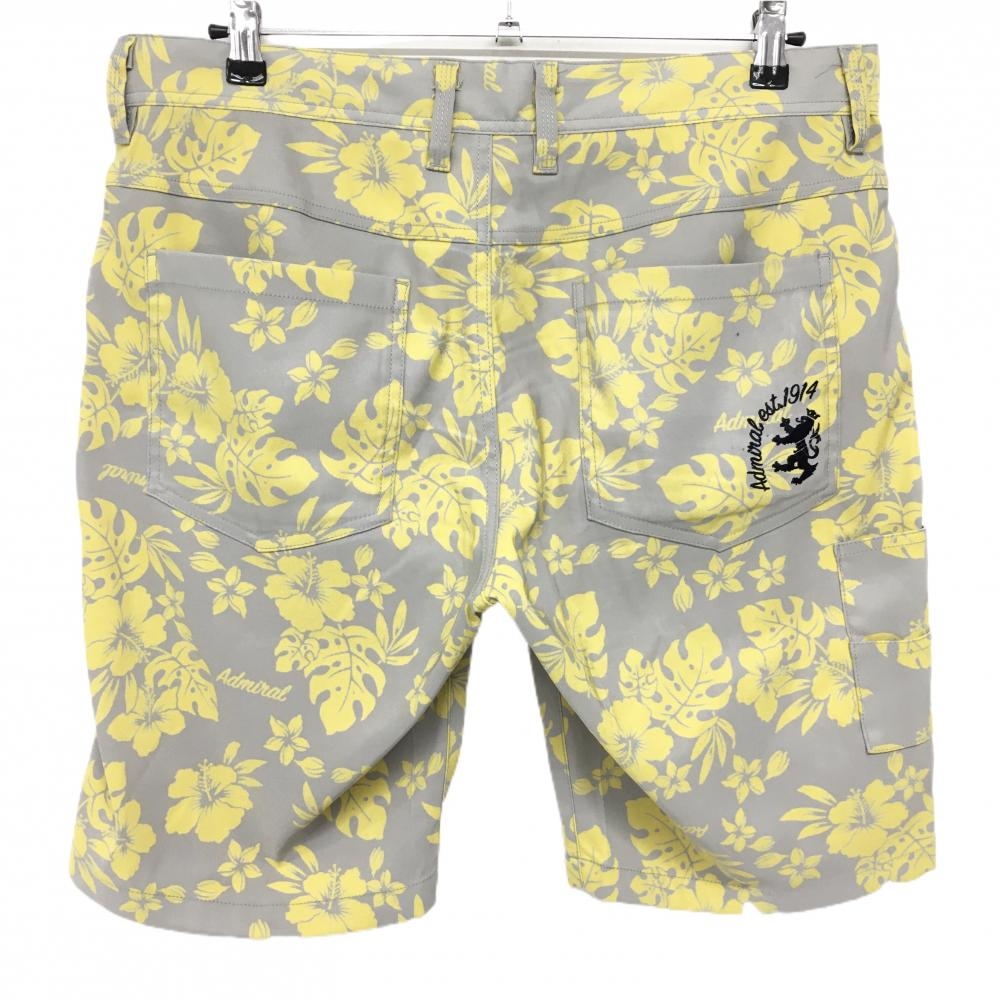 アドミラル ハーフパンツ グレー×イエロー ハイビスカス柄 ロゴ刺しゅう メンズ LL ゴルフウェア Admiral