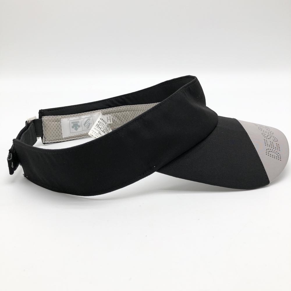 【美品】デサントゴルフ サンバイザー 黒×グレー フロントロゴ F(55cm-57cm) ゴルフウェア DESCENTE
