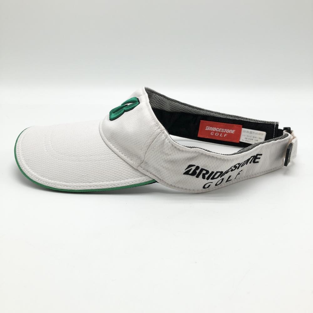 【美品】ブリヂストンゴルフ サンバイザー 白×グリーン 立体ロゴ刺しゅう フリーサイズ(約56-59cm) ゴルフウェア Bridgestone