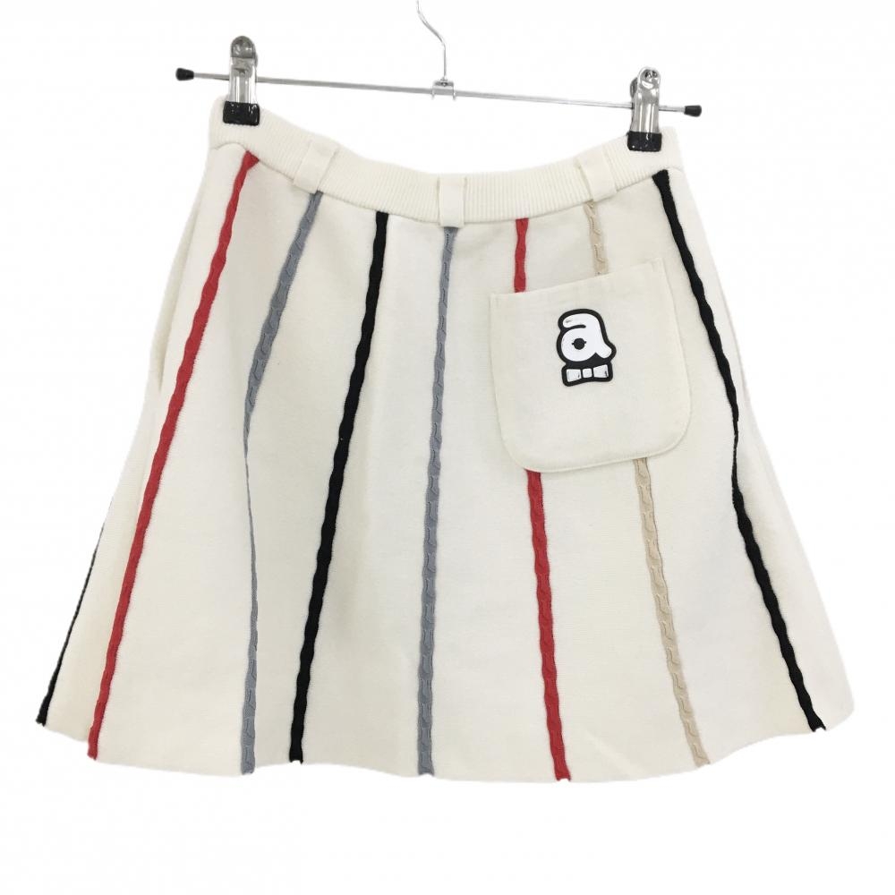 アルチビオ ニットスカート 白×レッド ストライプ レディース 36(S) ゴルフウェア archivio