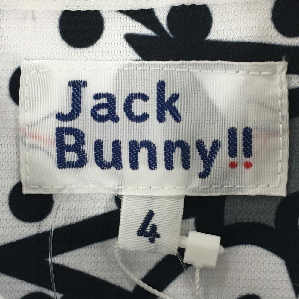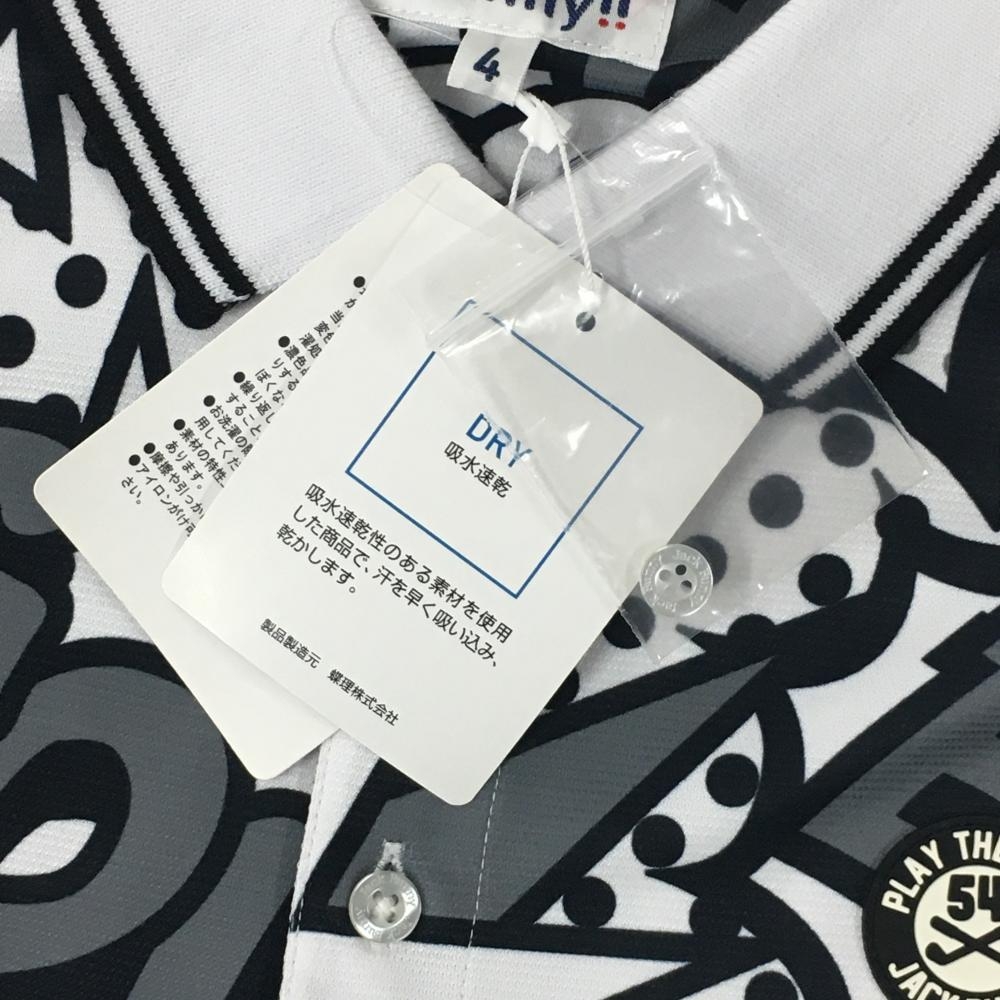 【新品】ジャックバニー 半袖ポロシャツ 白×黒 総柄 吸水速乾 シリコンワッペン メンズ 4(M) ゴルフウェア Jack Bunny