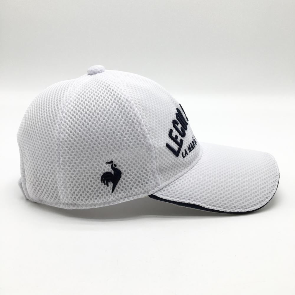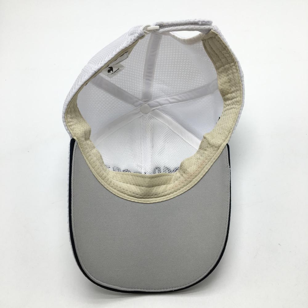 【美品】ルコックゴルフ キャップ 白×ネイビー メッシュ調 ロゴ刺しゅう F(55cm~57cm) ゴルフウェア le coq sportif