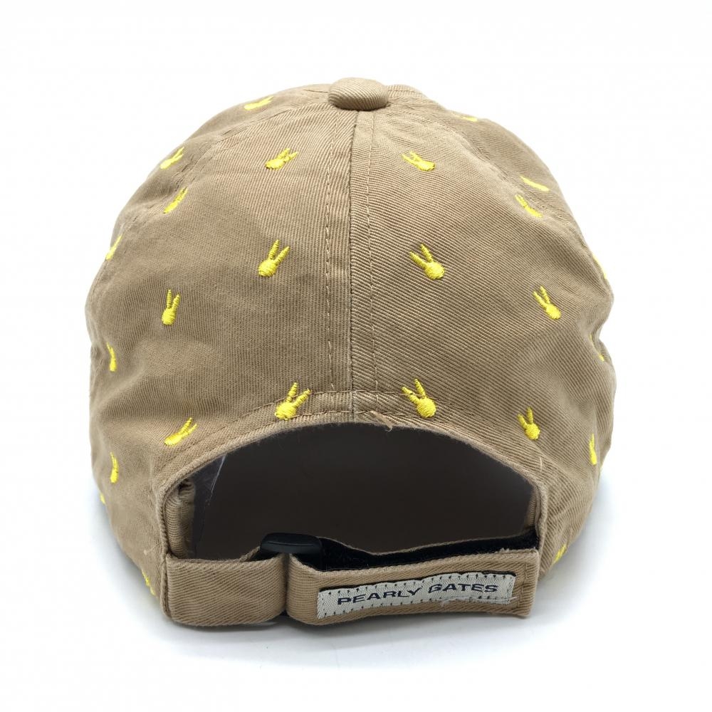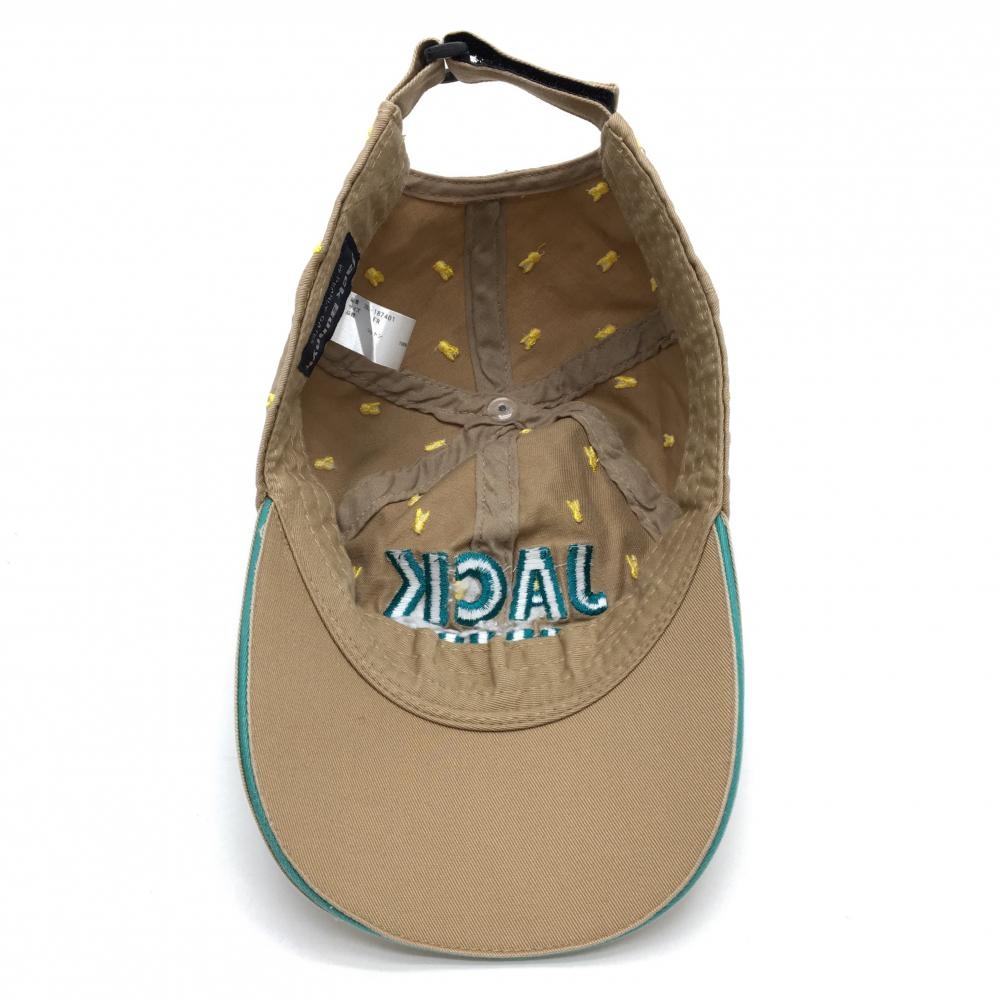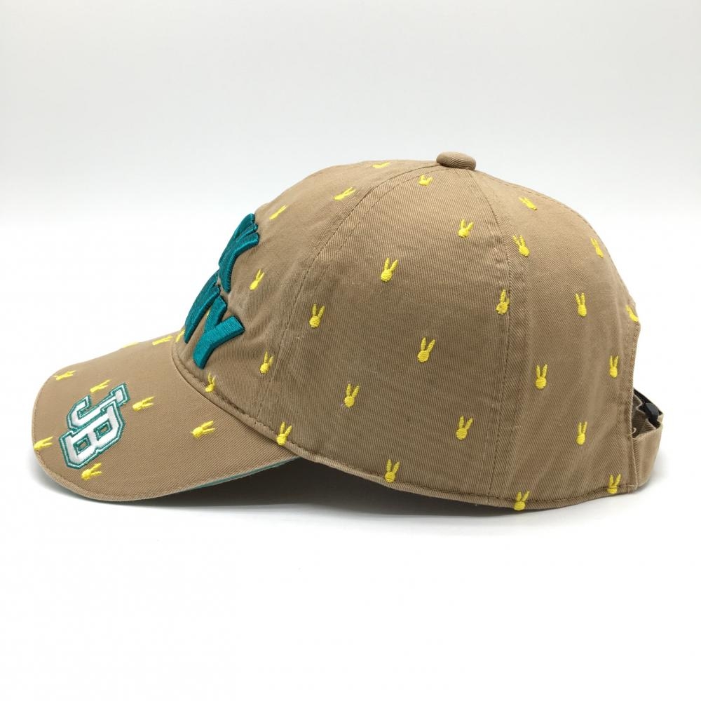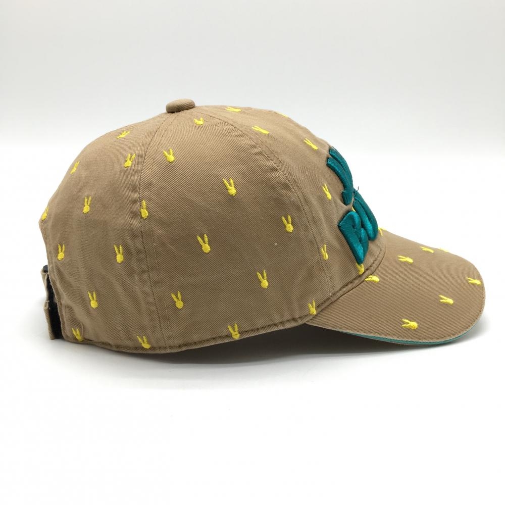 【美品】ジャックバニー キャップ ブラウン×イエロー うさぎ総柄刺しゅう コットン100% 立体ロゴ FR ゴルフウェア Jack Bunny