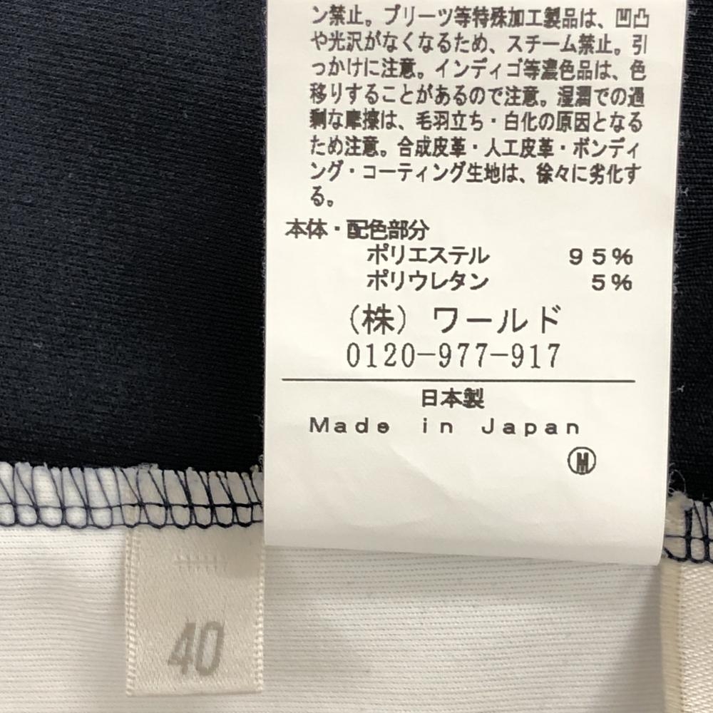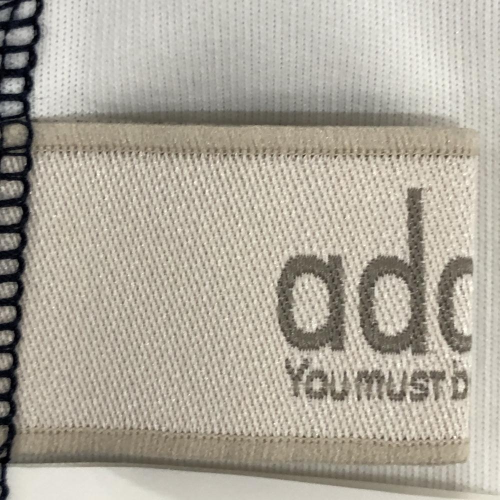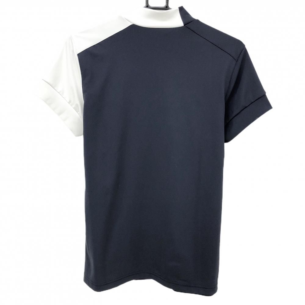 【美品】アダバット 半袖ハイネックシャツ ネイビー×白 肩ジップ レディース 40(L) ゴルフウェア adabat