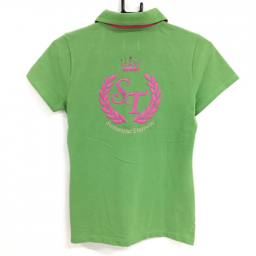 サマンサタバサNo.7 半袖ポロシャツ ライトグリーン×ピンク バック刺しゅう レディース 38(M) ゴルフウェア Samantha Thavasa