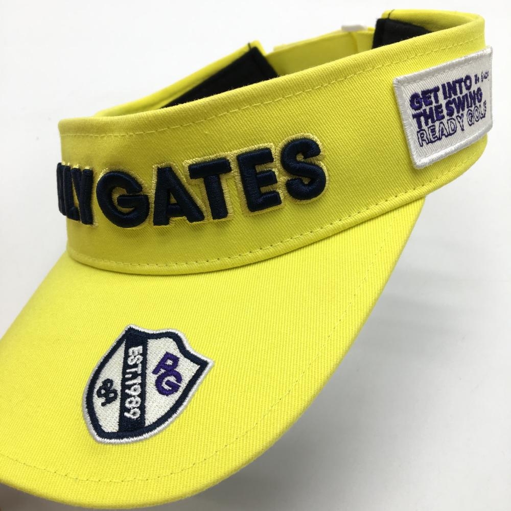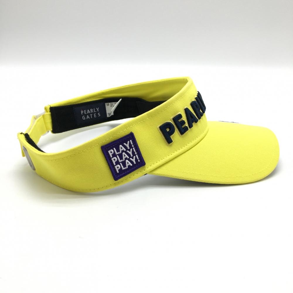 【超美品】パーリーゲイツ サンバイザー イエロー×ネイビー 立体ロゴ刺しゅう FR ゴルフウェア PEARLY GATES