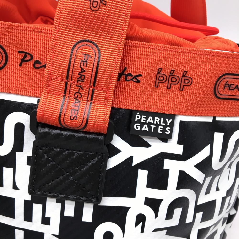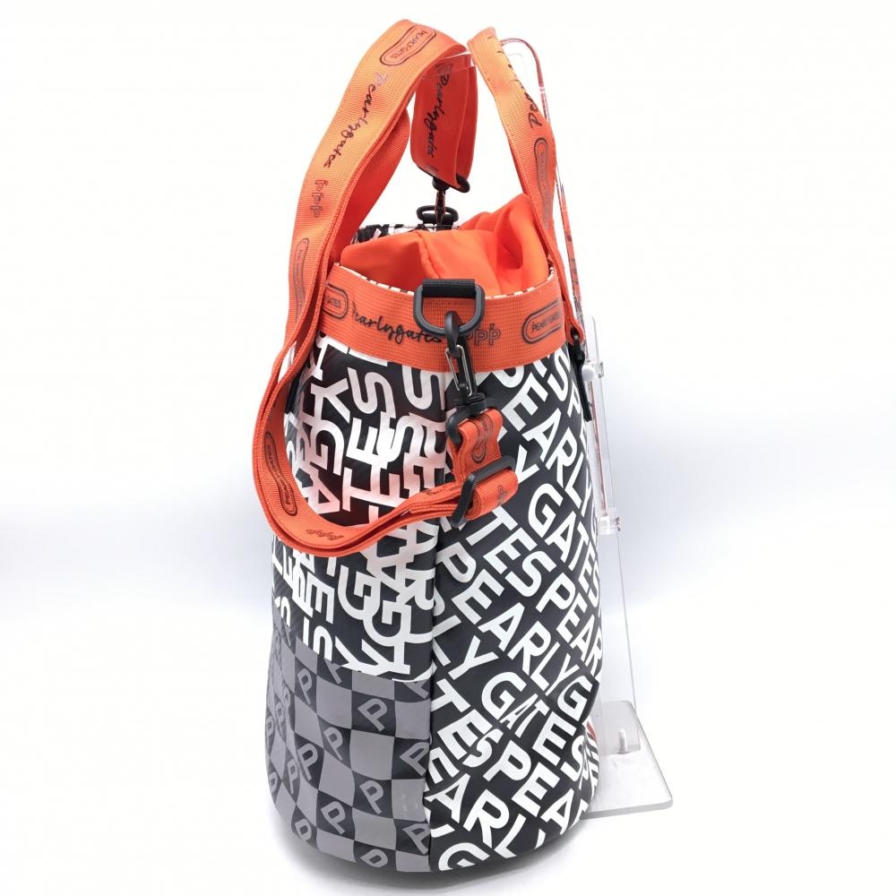 【美品】パーリーゲイツ 2WAYロッカーバッグ 黒×白×オレンジ ロゴ総柄 内側ニコちゃん スマイルゴルフ 2024年モデル PEARLY GATES