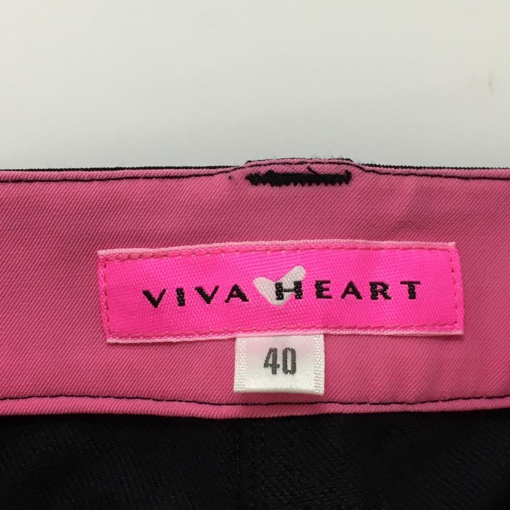 【美品】ビバハート パンツ 黒 無地 後ポケットハートステッチ ストレッチ 裏微起毛 レディース 40(M) ゴルフウェア VIVA HEART