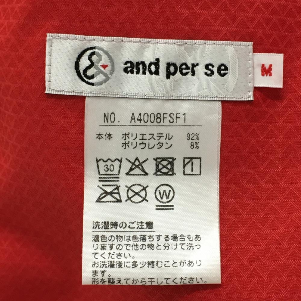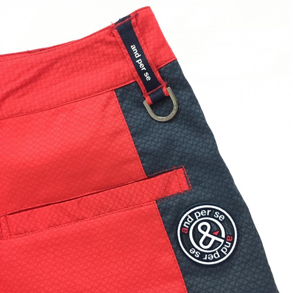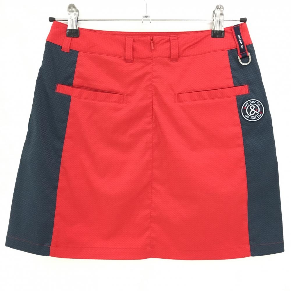 【超美品】アンパスィ スカート レッド×ネイビー サイドロゴプリント 地模様 ストレッチ レディース M ゴルフウェア and per se