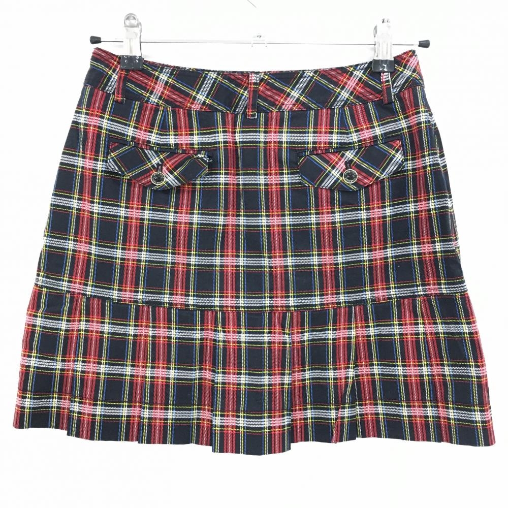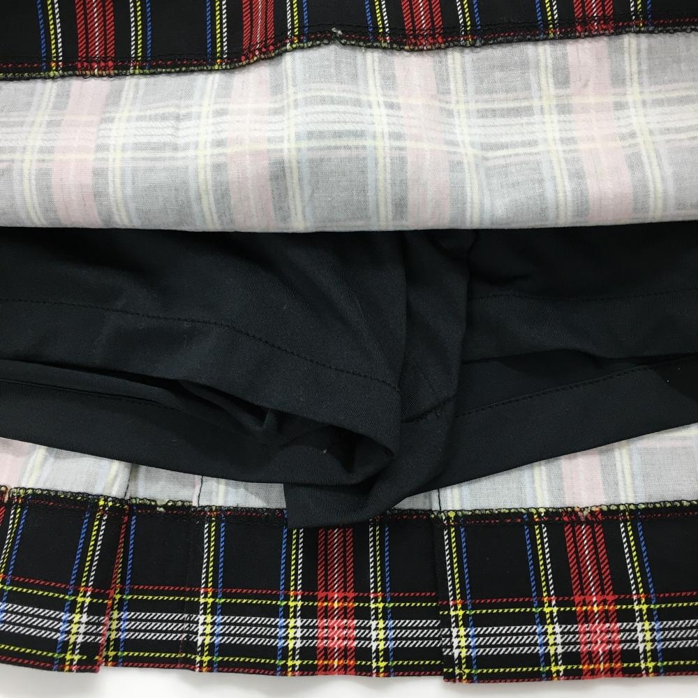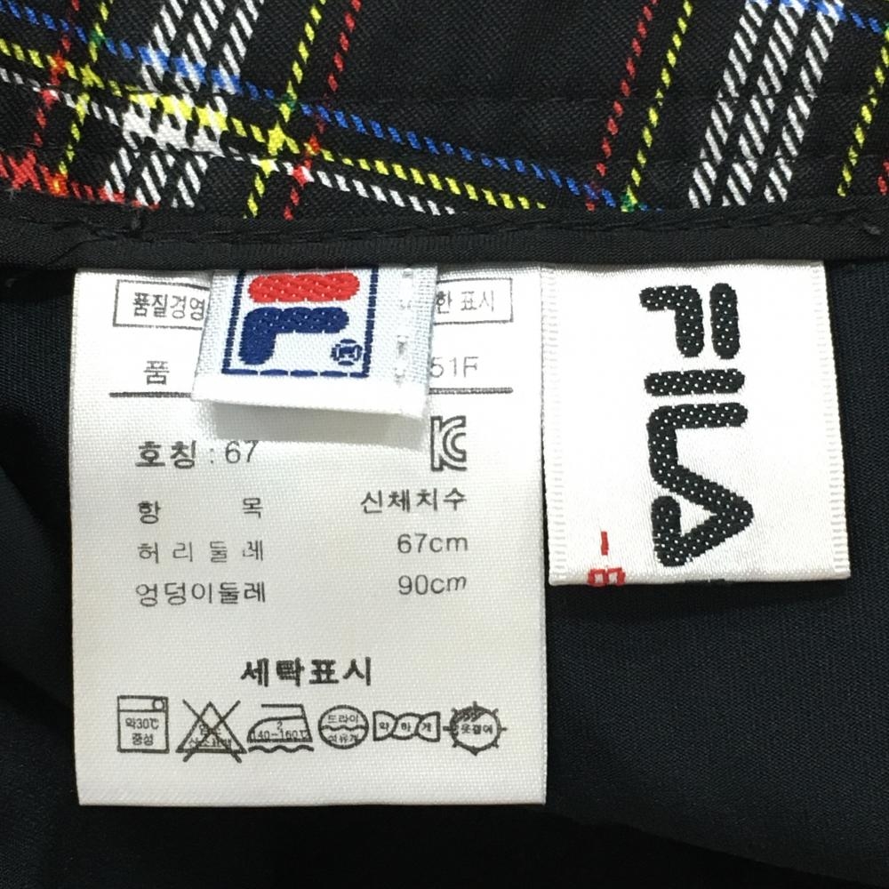【超美品】フィラゴルフ スカート 黒×レッド チェック フロントプリント 内側インナーパンツ レディース 67 ゴルフウェア FILA GOLF
