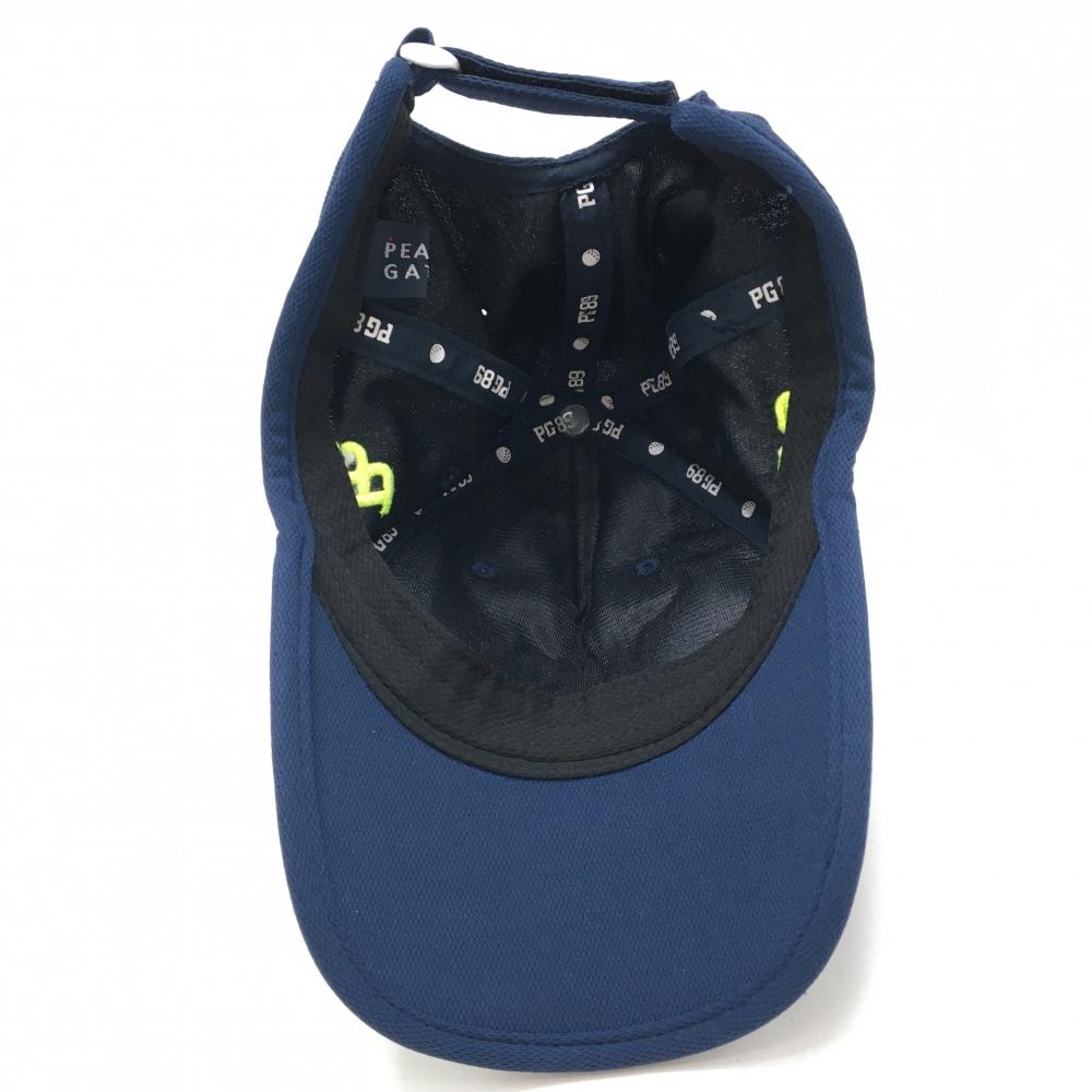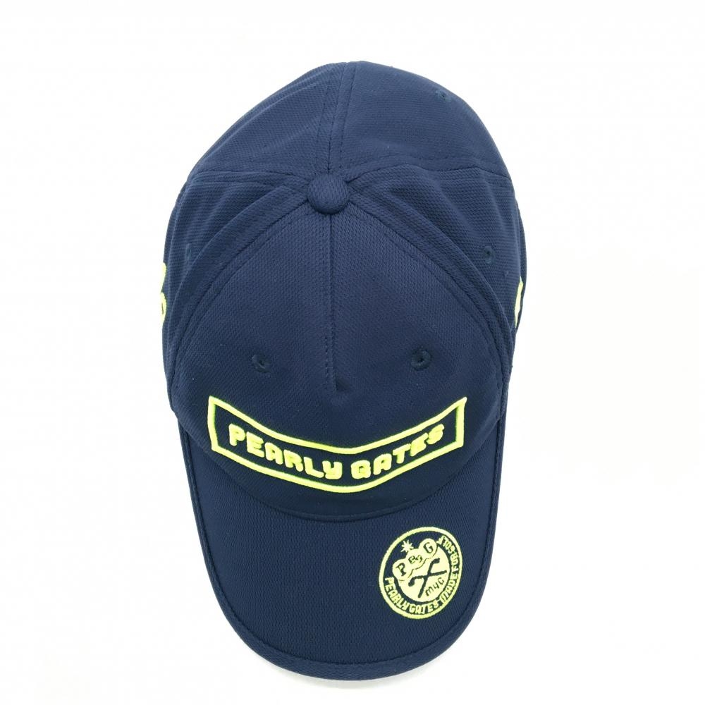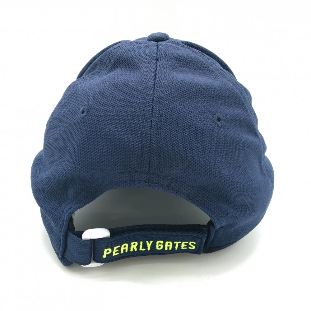 【超美品】パーリーゲイツ キャップ ネイビー×蛍光イエロー 立体ロゴ ゴルフウェア PEARLY GATES