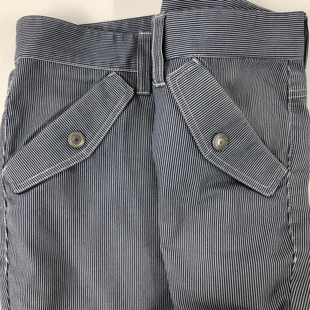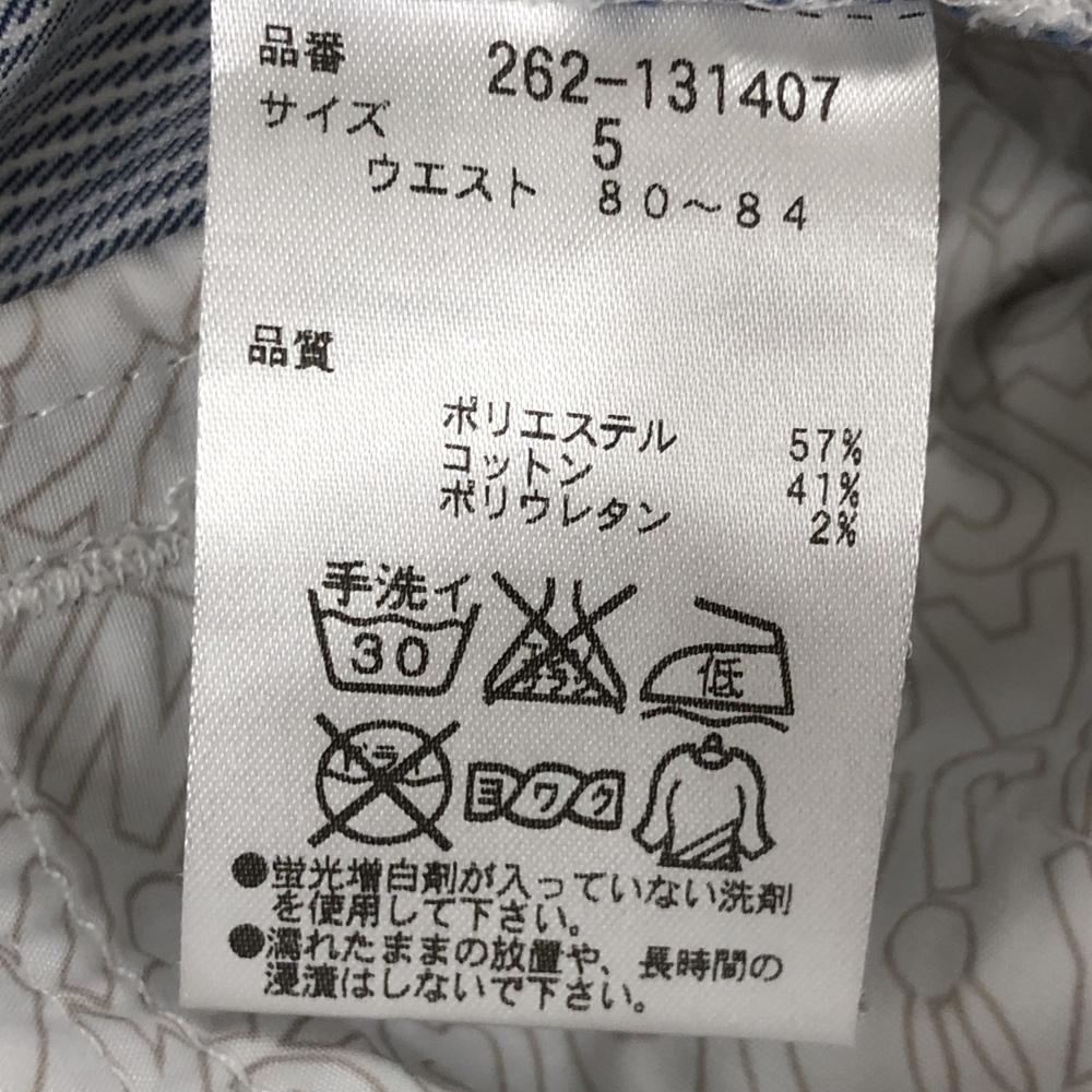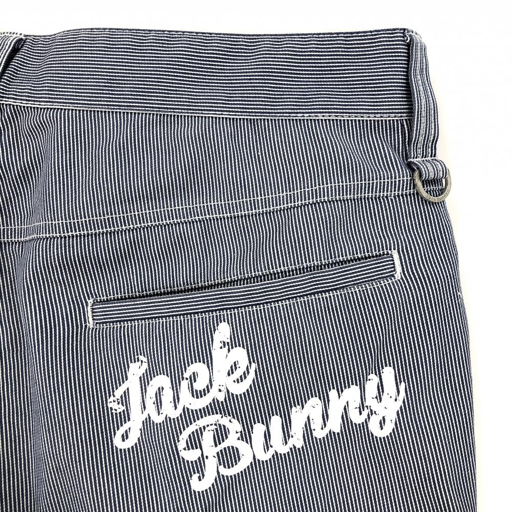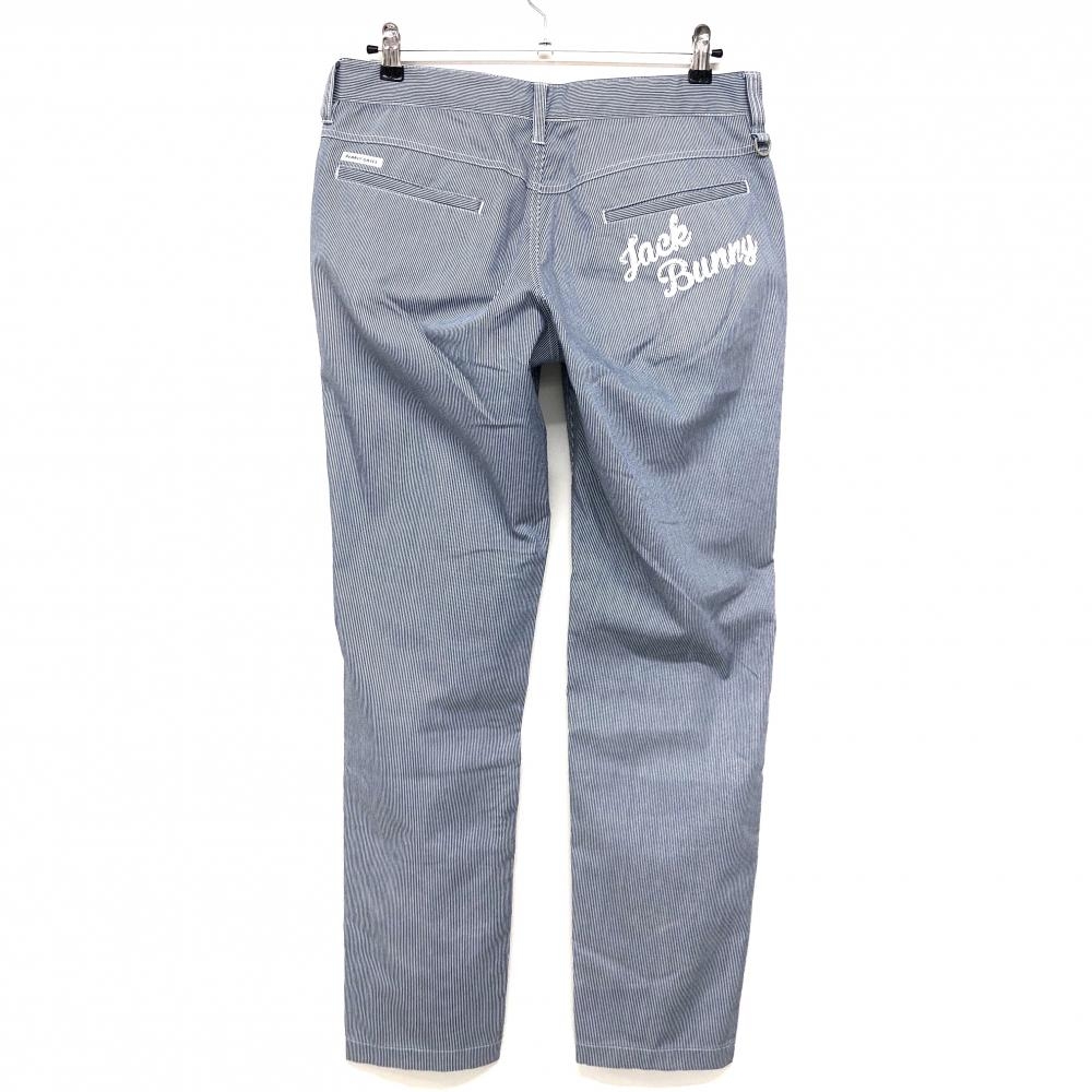 【美品】ジャックバニー パンツ 白×ネイビー 細ストライプ ストレッチ メンズ 5(L) ゴルフウェア Jack Bunny