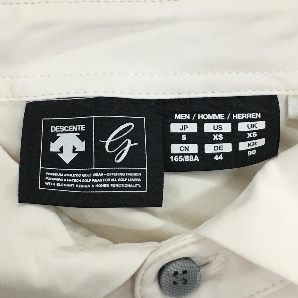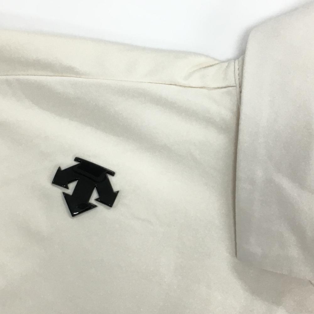 【美品】デサントゴルフ 長袖ポロシャツ アイボリー×黒 肩ロゴ ストレッチ 中田英寿 レディース S ゴルフウェア DESCENTE