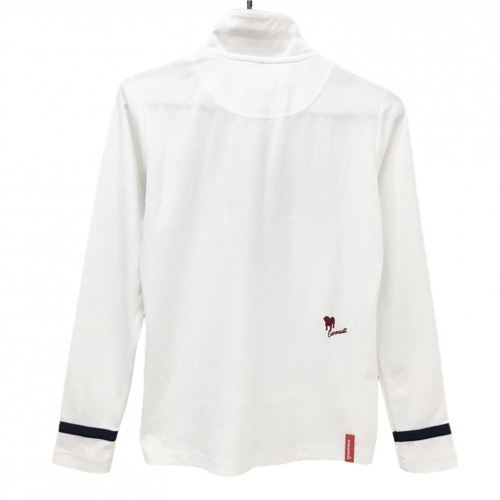 ルコックゴルフ 長袖ハイネックシャツ 白×ネイビー ハーフジップ 袖口ライン ロゴ刺しゅう レディース L ゴルフウェア le coq sportif