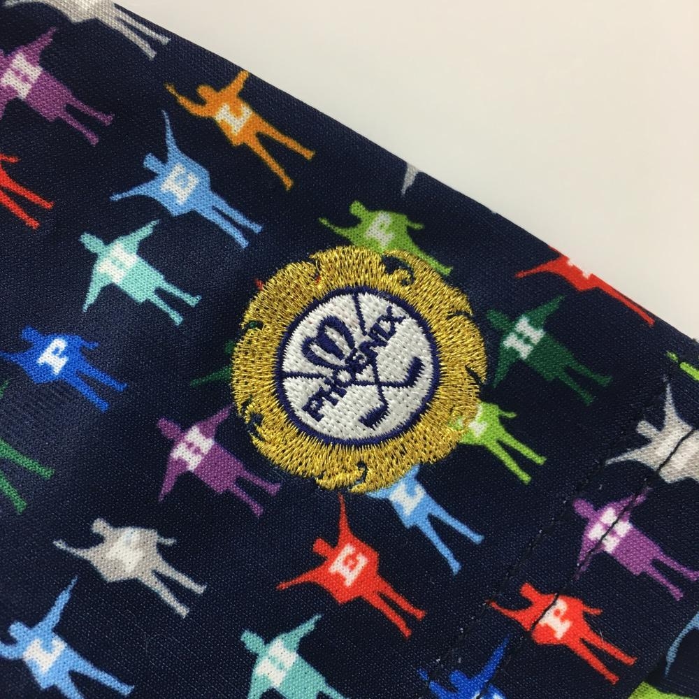 【超美品】アドミラル 半袖ポロシャツ ネイビー×マルチカラー 総柄 ビートルズ レディース M ゴルフウェア Admiral