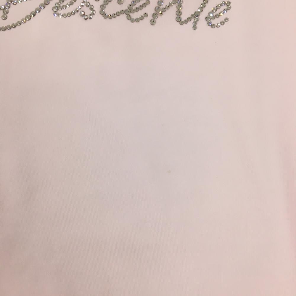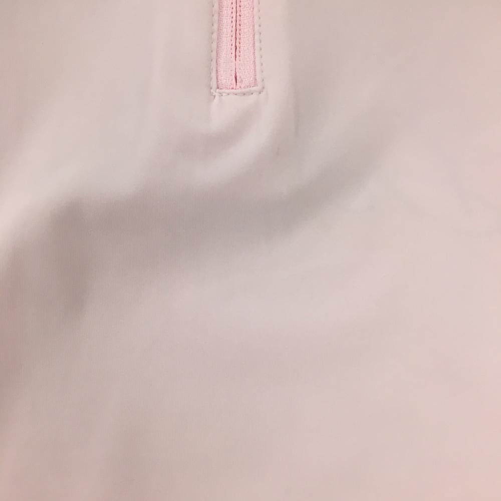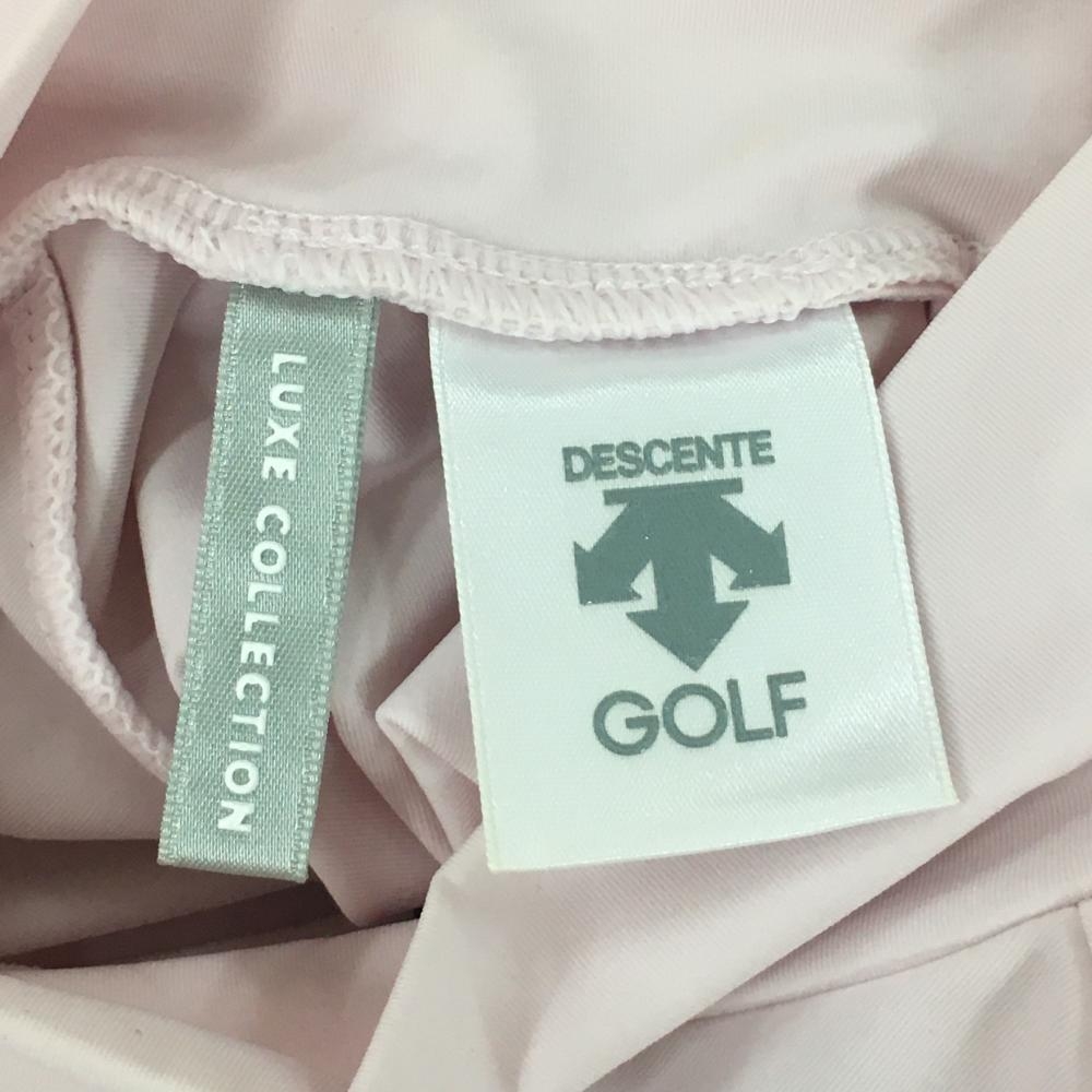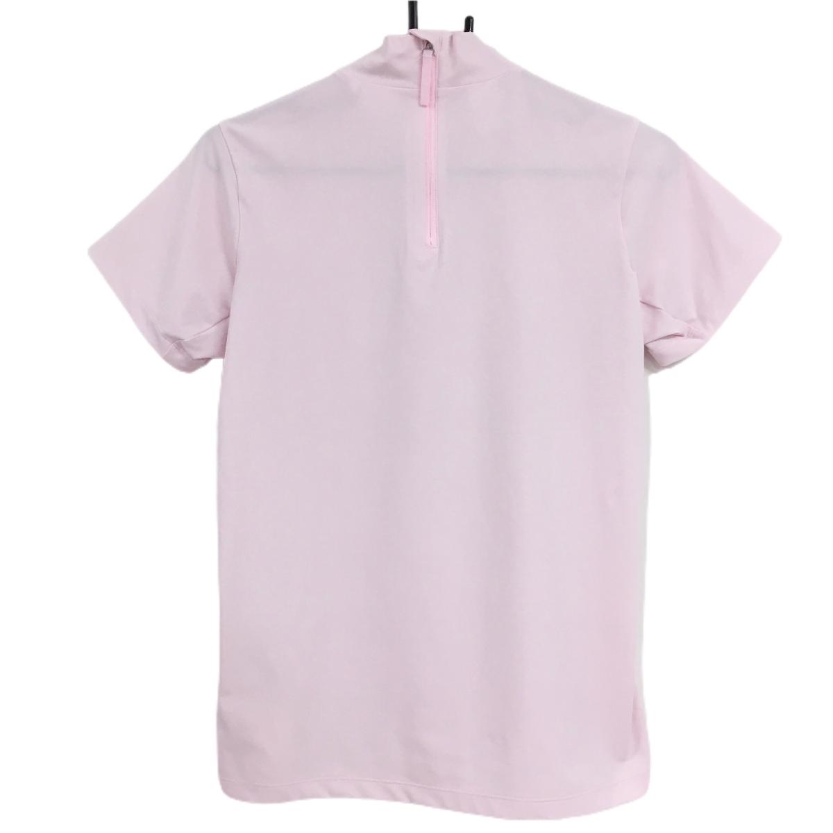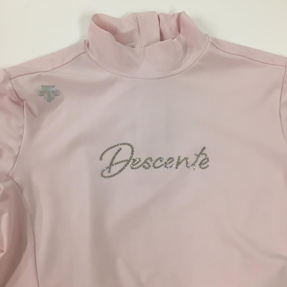 【美品】デサントゴルフ 半袖ハイネックシャツ ライトピンク フロントラインストーン レディース L ゴルフウェア DESCENTE