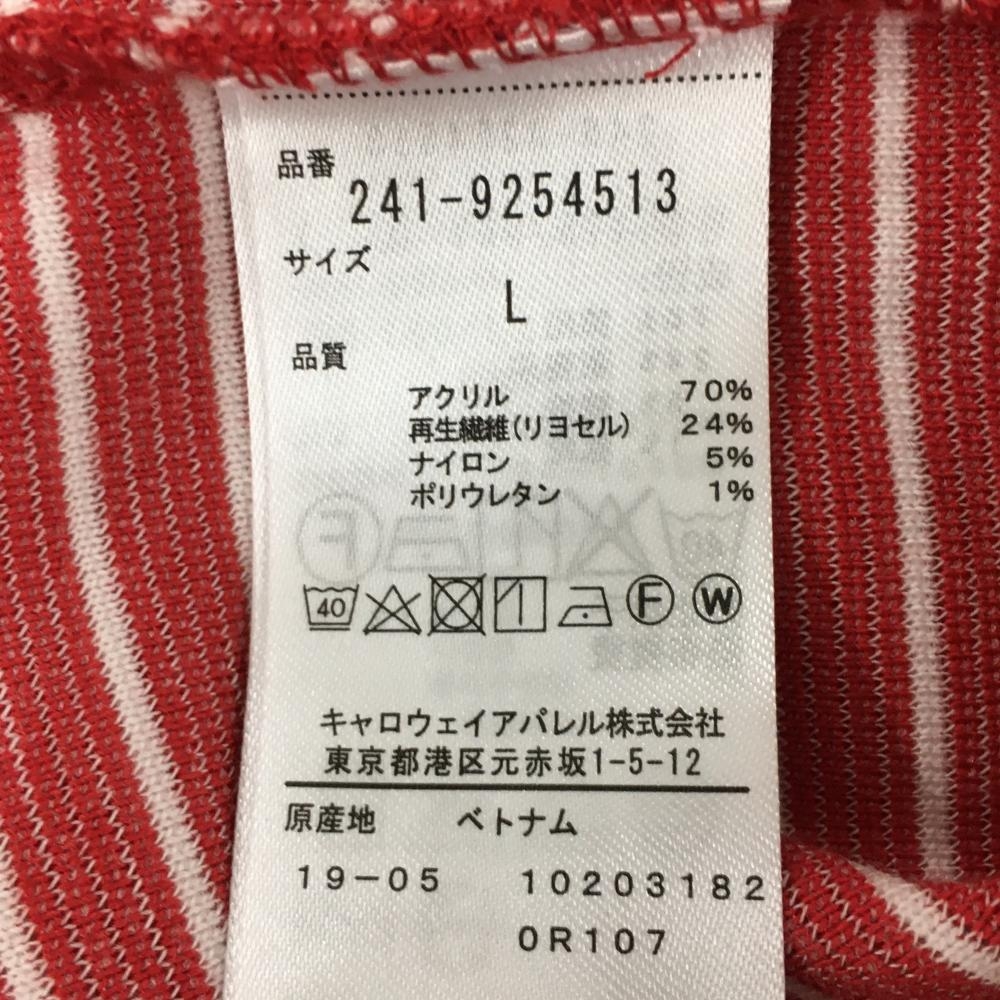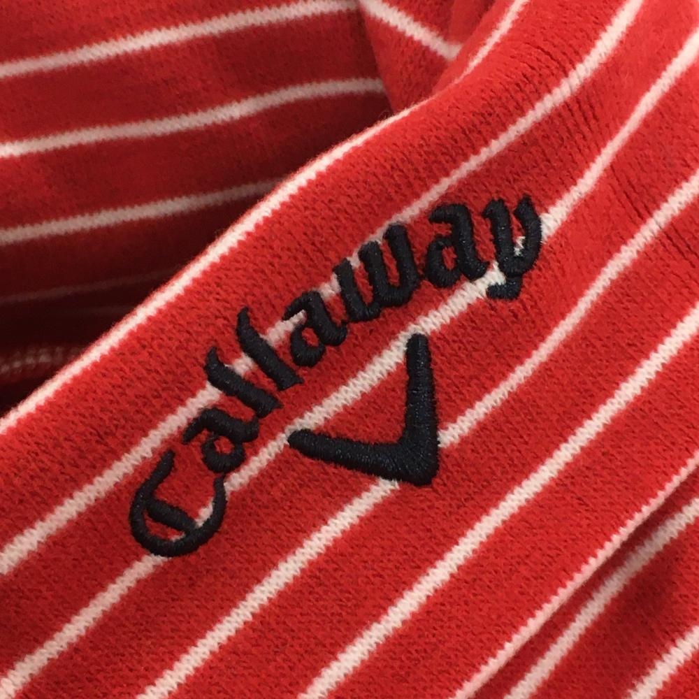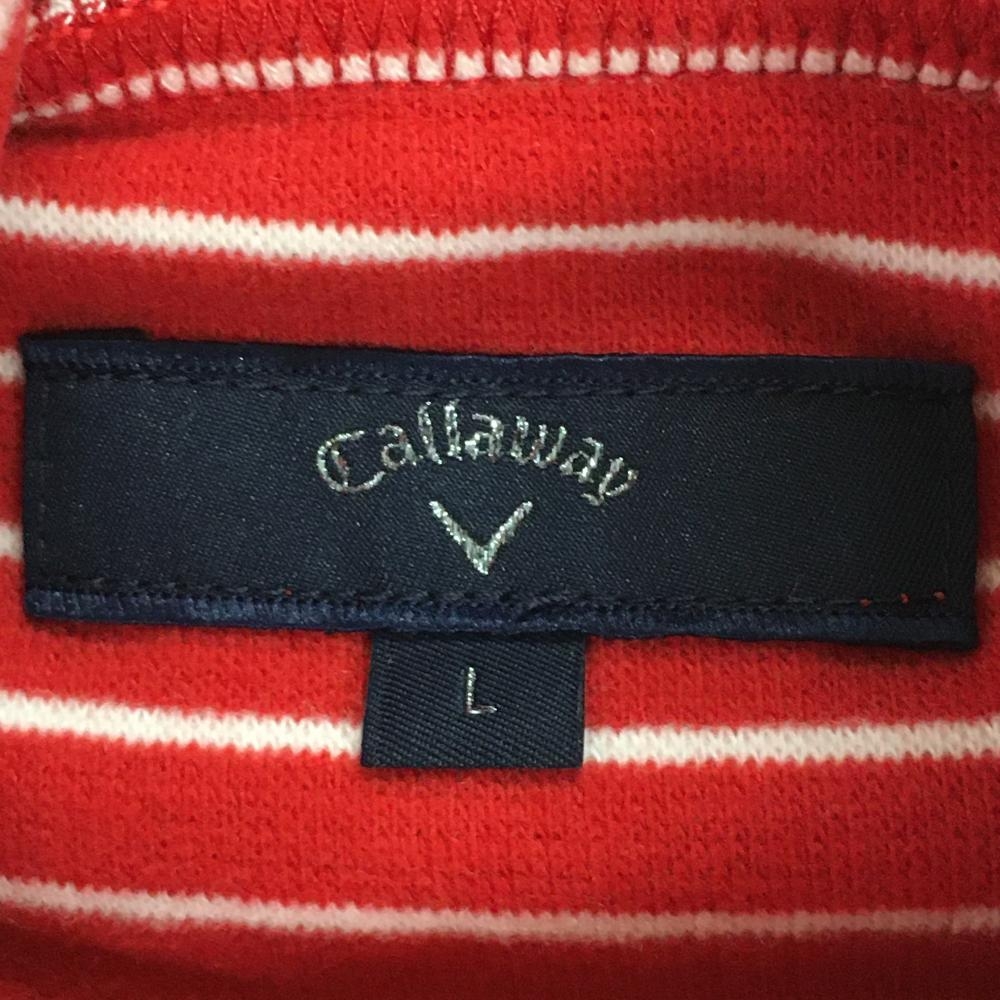 【超美品】キャロウェイ 長袖タートルネックシャツ レッド×白 ボーダー 表微起毛 ハイネック メンズ L ゴルフウェア Callaway