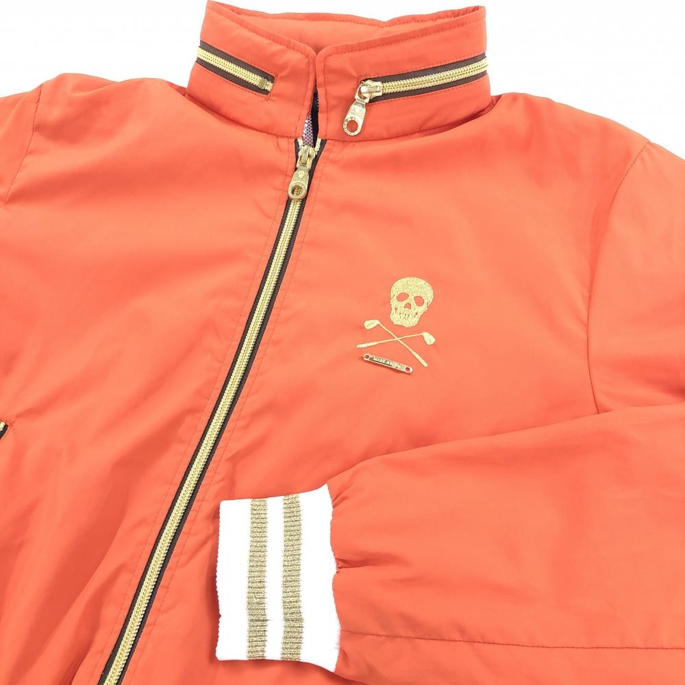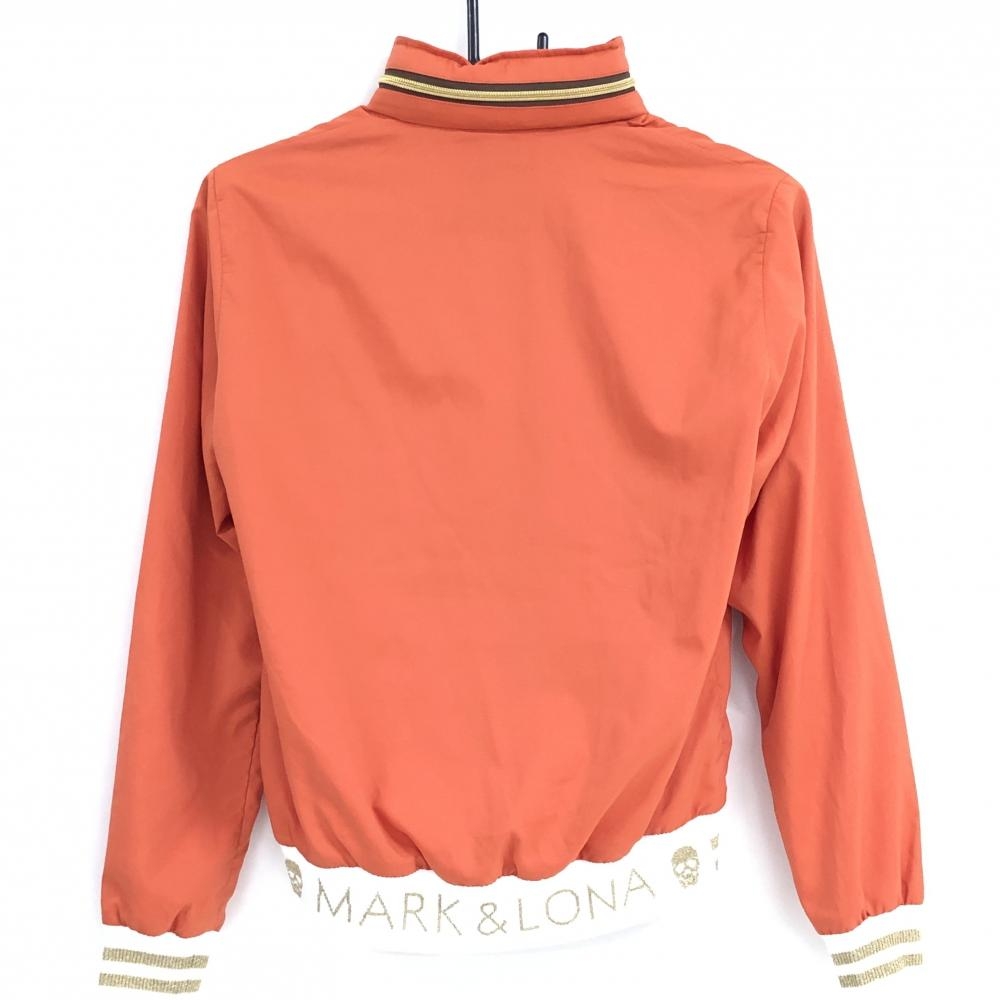 【超美品】マークアンドロナ ジャケット オレンジ 裾ロゴ・スカル メッシュ裏地 フード収納可 レディース ゴルフウェア MARK&LONA