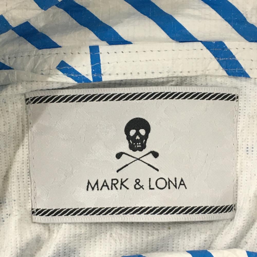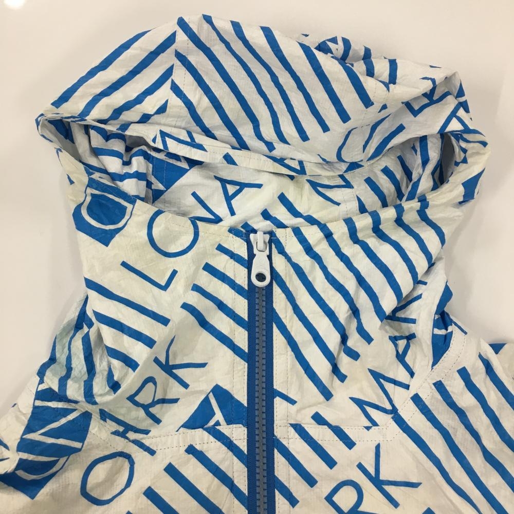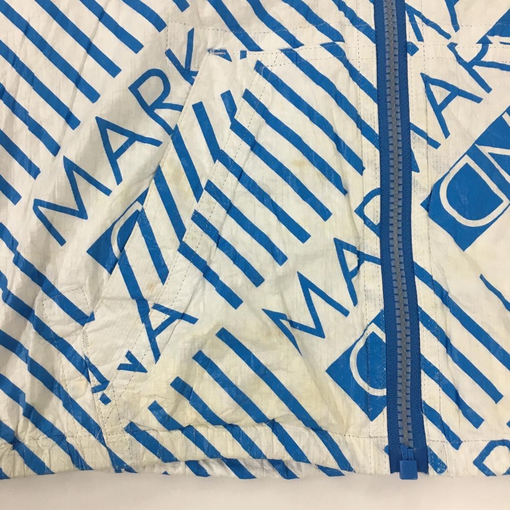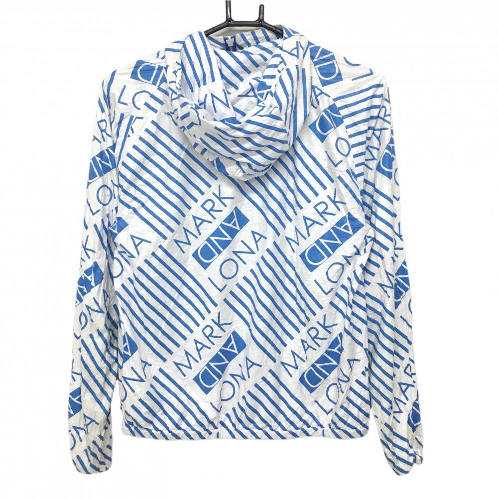 マークアンドロナ ジップパーカー 白×ライトブルー 総柄 しわ加工 レディース M ゴルフウェア MARK&LONA
