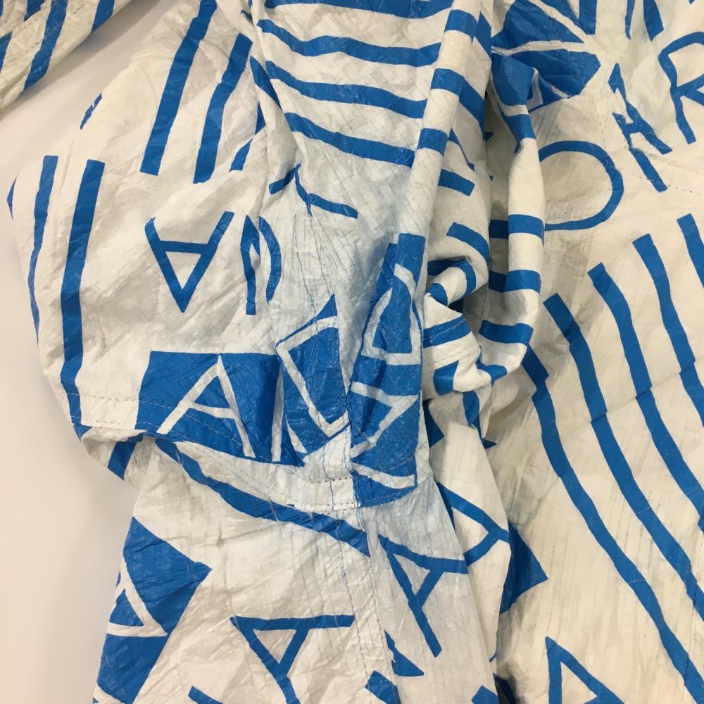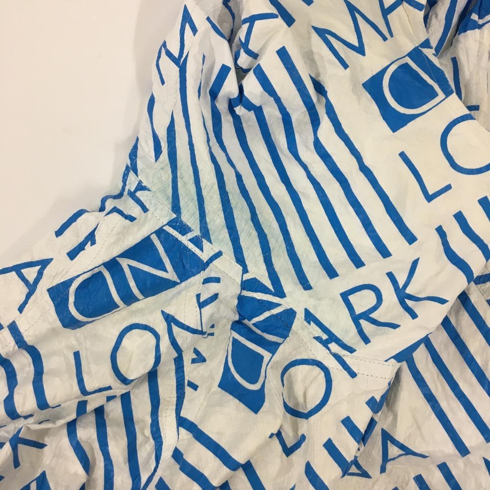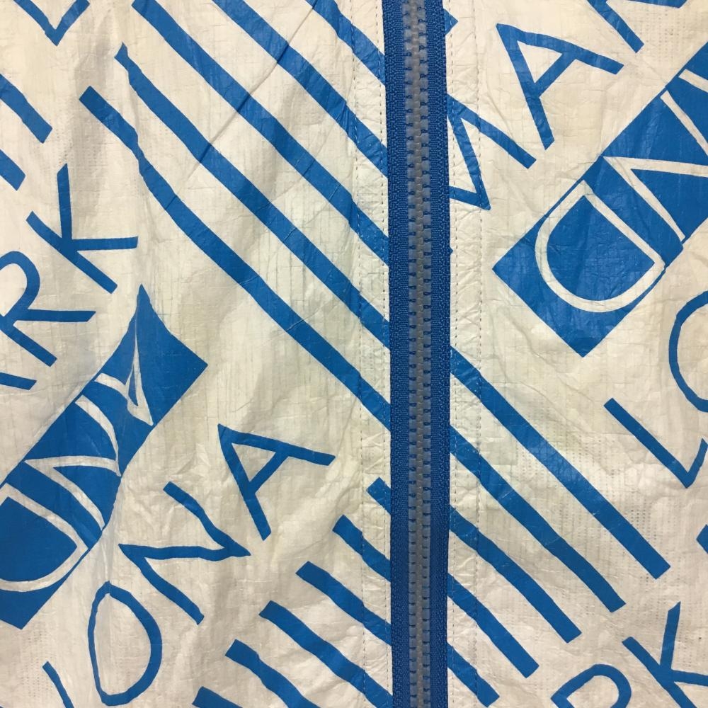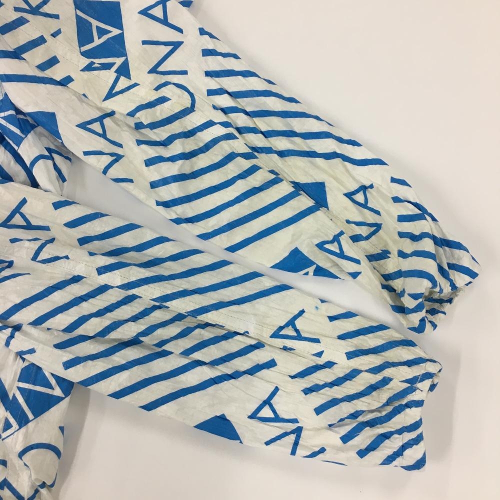 マークアンドロナ ジップパーカー 白×ライトブルー 総柄 しわ加工 レディース M ゴルフウェア MARK&LONA